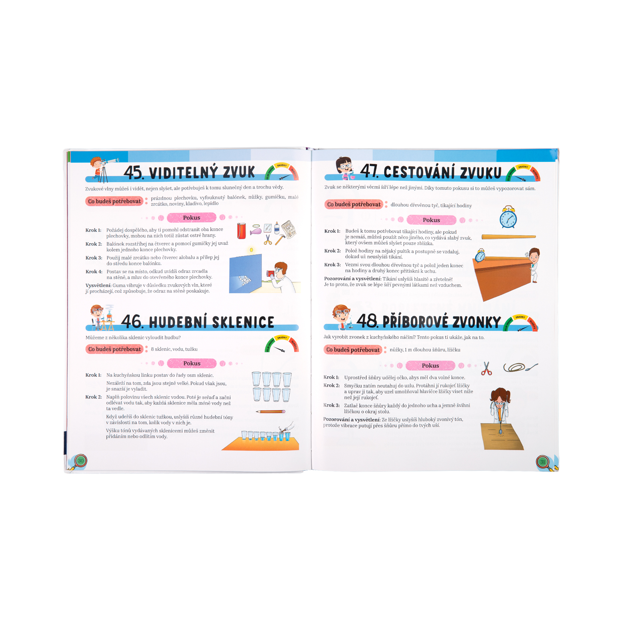 Staňte se malými vědci a objevujte svět plný fascinujících experimentů! Zkoumejte, jak funguje elektřina, co dokáže voda nebo jak si vyrobit vlastní sopku. Každý den přináší nové objevy – jste připraveni na vědecké dobrodružství? V této dětské knize nápadů najdete 365 zábavných a jednoduchých pokusů na každý den, které dětem přiblíží vědu hravou a srozumitelnou formou. Každý experiment je pečlivě popsán v jednoduchých krocích, které umožní bezpečně zkoumat vědecké zákonitosti přímo u vás doma. Kniha nabízí 3 stupně obtížnosti, snadno tak zabavíte všechny děti od 6 let. Rozměry knihy: 22 × 28,5 cm ISBN: 978-80-7688-343-7