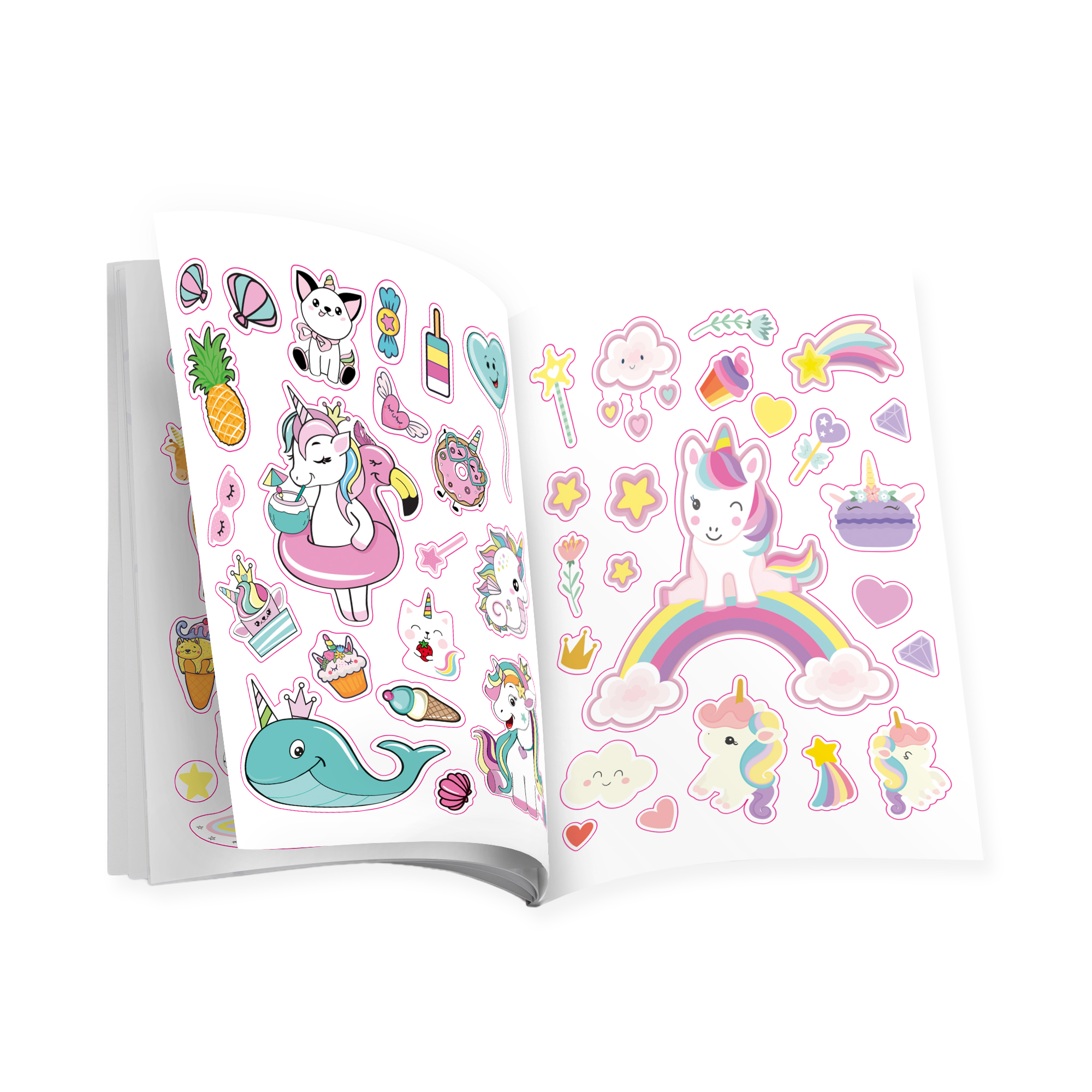 V tomto sešitu najdete samolepky roztomilých jednorožců a dalších holčičích motivů. Můžete si je nalepit například na obal sešitu nebo svačinovou krabičku a zbylými samolepkami ozdobit třeba ručně vytvořené narozeninové pozvánky. Nápadům se meze nekladou! Některé samolepky se krásně třpytí, jiné si vybarvíte sami. Hurá, jde se zdobit! Balení obsahuje: 500 samolepek na dvaceti stranách (10 stran barevných samolepek, 5 stran samolepek k vybarvení a 5 stran třpytivých samolepek)