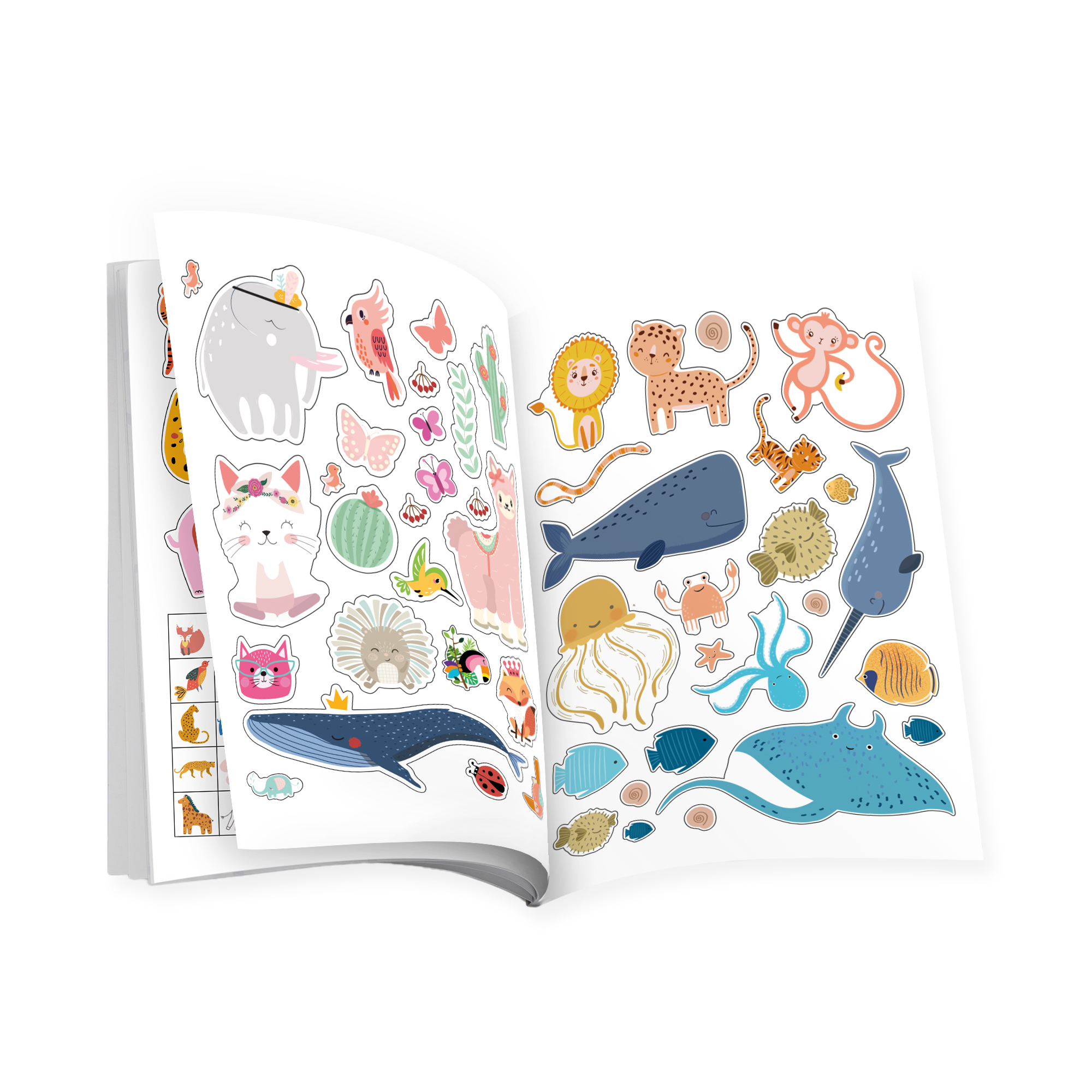 V tomto sešitu najdete samolepky všech oblíbených zvířátek a dalších roztomilých motivů. Můžete si je nalepit například na obal sešitu nebo svačinovou krabičku a zbylými samolepkami ozdobit třeba ručně vytvořené narozeninové pozvánky. Nápadům se meze nekladou! Některé samolepky se krásně třpytí, jiné si vybarvíte sami. Hurá, jde se zdobit! Balení obsahuje: 500 samolepek na dvaceti stranách (10 stran barevných samolepek, 5 stran samolepek k vybarvení a 5 stran třpytivých samolepek)