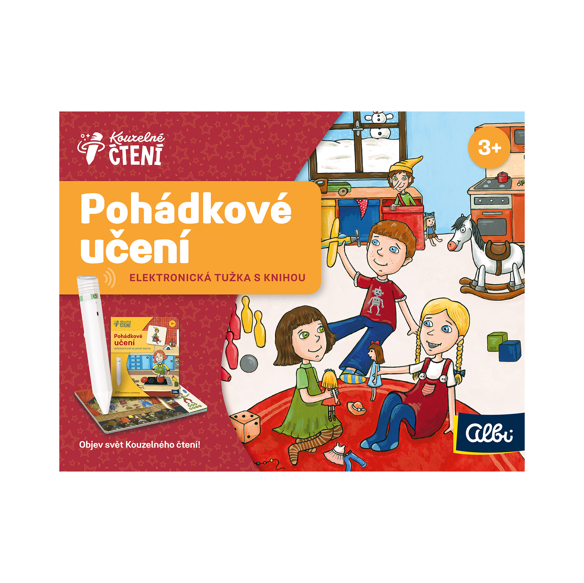 2. místo v kategorii baby Druhé místo v soutěži Hračka roku 2022 ve své kategorii získala Albi tužka s Pohádkovým učením. Interaktivní mluvící dětská kniha Pohádkové učení s Elektronickou Albi tužkou 2.0 z edice Kouzelné čtení seznámí děti předškolního věku s barvami, tvary, části těla, čísly nebo třeba protiklady. Celou knihou je doprovodí skřítek Zvídálek. Na každé stránce na děti od 3 let čekají zábavné hry a nechybí ani pohádky a písničky. Kniha Pohádkové učení obsahuje přes 1 400 zvuků a textů. Namluvili Veronika Khek Kubařová a Lukáš Příkazký. Elektronická Albi tužka 2.0 disponuje výkonnější baterií, má ergonomický úchop a bezdrátové připojení ke sluchátkům a repráčku. Sada Albi tužka 2.0 s knihou Pohádkové učení obsahuje: elektronickou Albi tužku 2.0, knihu Pohádkové učení, USB-C kabel, Průvodce Kouzelným čtením, 10 kusů samolepek MP3 přehrávače, 10 kusů samolepek ovládání hlasitosti a Audio blok. Sada neobsahuje stojánek na tužku. Technická specifikace: 32 GB paměť. karta (lze vložit vlastní SD kartu s kapacitou až 32 GB), USB 2.0 vysokorychlostní připojení, Li-ion baterie (vestavěná dobíjecí 400 mA / 3,7 V) a Bluetooth pro připojení sluchátek nebo reproduktoru. Plně kompatibilní se všemi produkty z edice Kouzelné čtení a Tolki. ZVUKOVÉ UKÁZKY Poslechněte si několik ukázek z knihy Pohádkové učení – Kouzelné čtení.