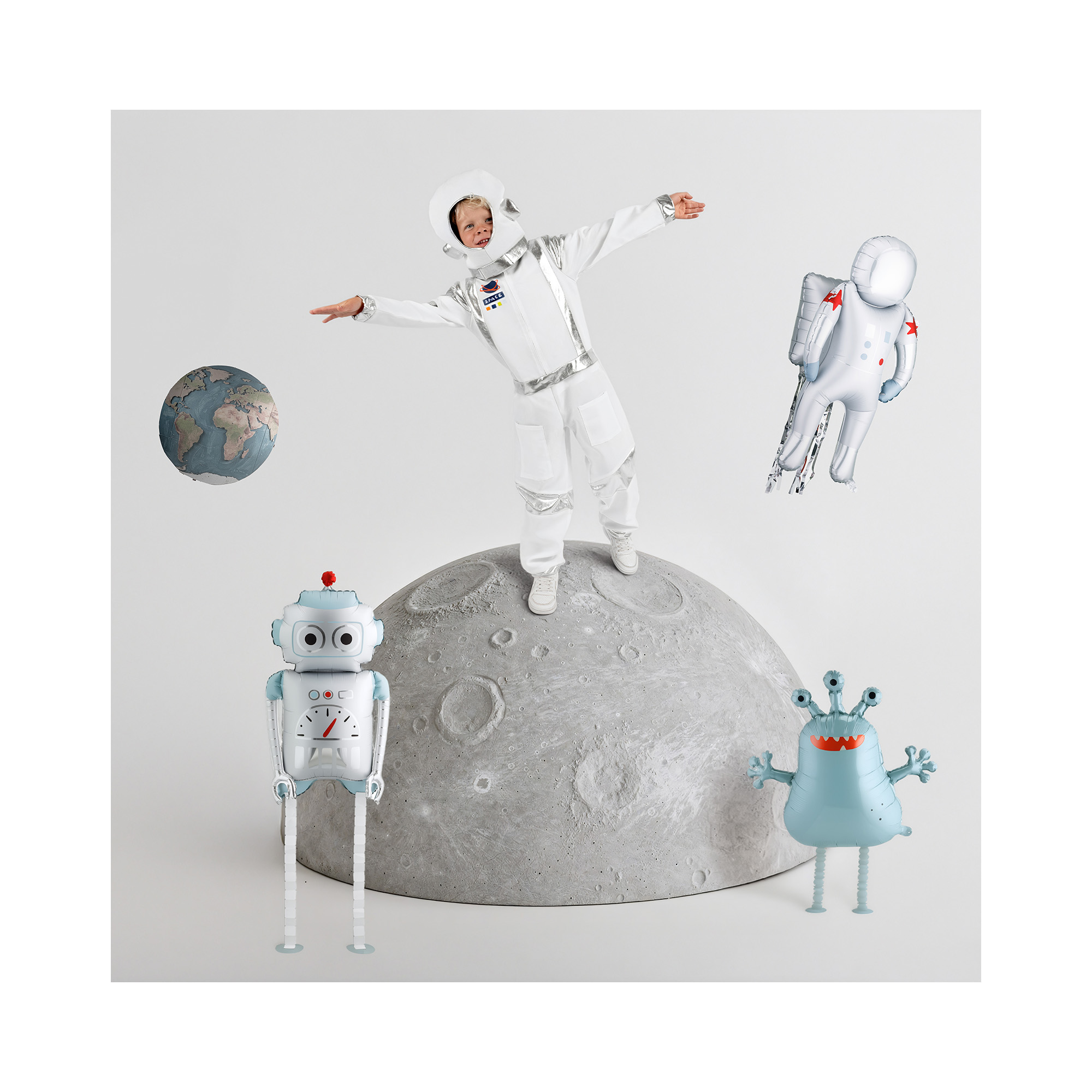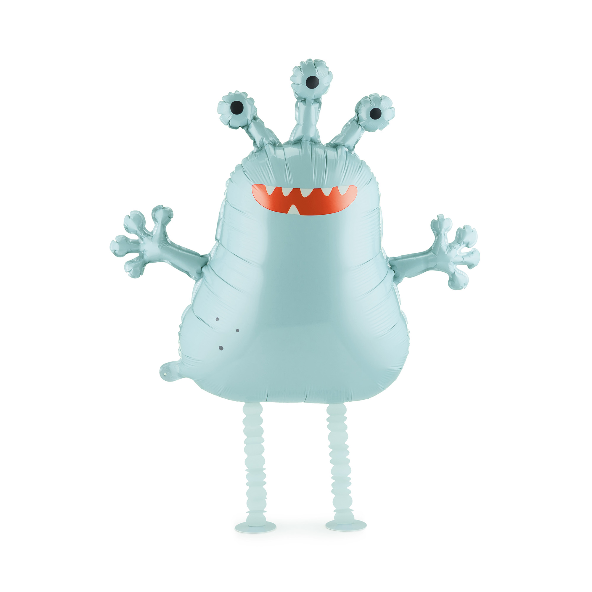 Chodící fóliový balónek ve tvaru mimozemšťana je skvělou volbou pro originální výzdobu i zábavu na dětské párty nebo tematické narozeninové oslavě. Balónkový mimozemšťan má pastelově modrou barvu, z hlavy mu vykukují tři oči a k tělu má připevněné papírové nožičky. Nechte balónek volně pobíhat po zahradě, nebo ho využijte jako zábavný prvek pro děti. Přivažte k němu provázek a nechte děti, aby se s ním procházely. Rozměry: 58 × 60 cm po nafouknutí (82 × 74,5 cm před nafouknutím), výška nožiček je cca 25 cm Materiál: fólie Balení obsahuje: 1 ks balónku s nožičkami a brčko pro snadné nafouknutí Balónek je možné nafukovat vzduchem i heliem. Pro docílení „chodícího efektu“ je třeba jej nafouknout heliem.