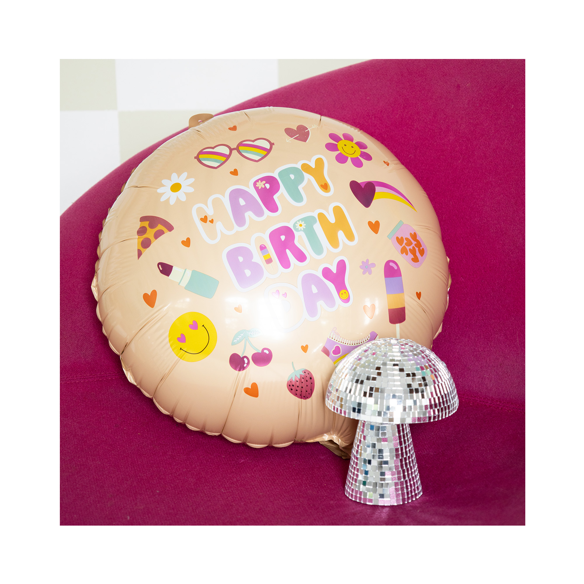 kulatý fóliový balónek v broskvové barvě, s veselým vzorem Boho Girlz a textem "Happy Birthday" je vhodný jako dekorace na holčičí narozeninovou oslavu. Tento balónek můžete zkombinovat s dalšími párty doplňky a dekoracemi z řady produktů s veselým vzorem Boho Girlz. Velikost/rozměr: 18" – 45 cm Materiál: fólie Balení obsahuje: 1 ks balónku Balónky je možné nafukovat vzduchem i heliem.