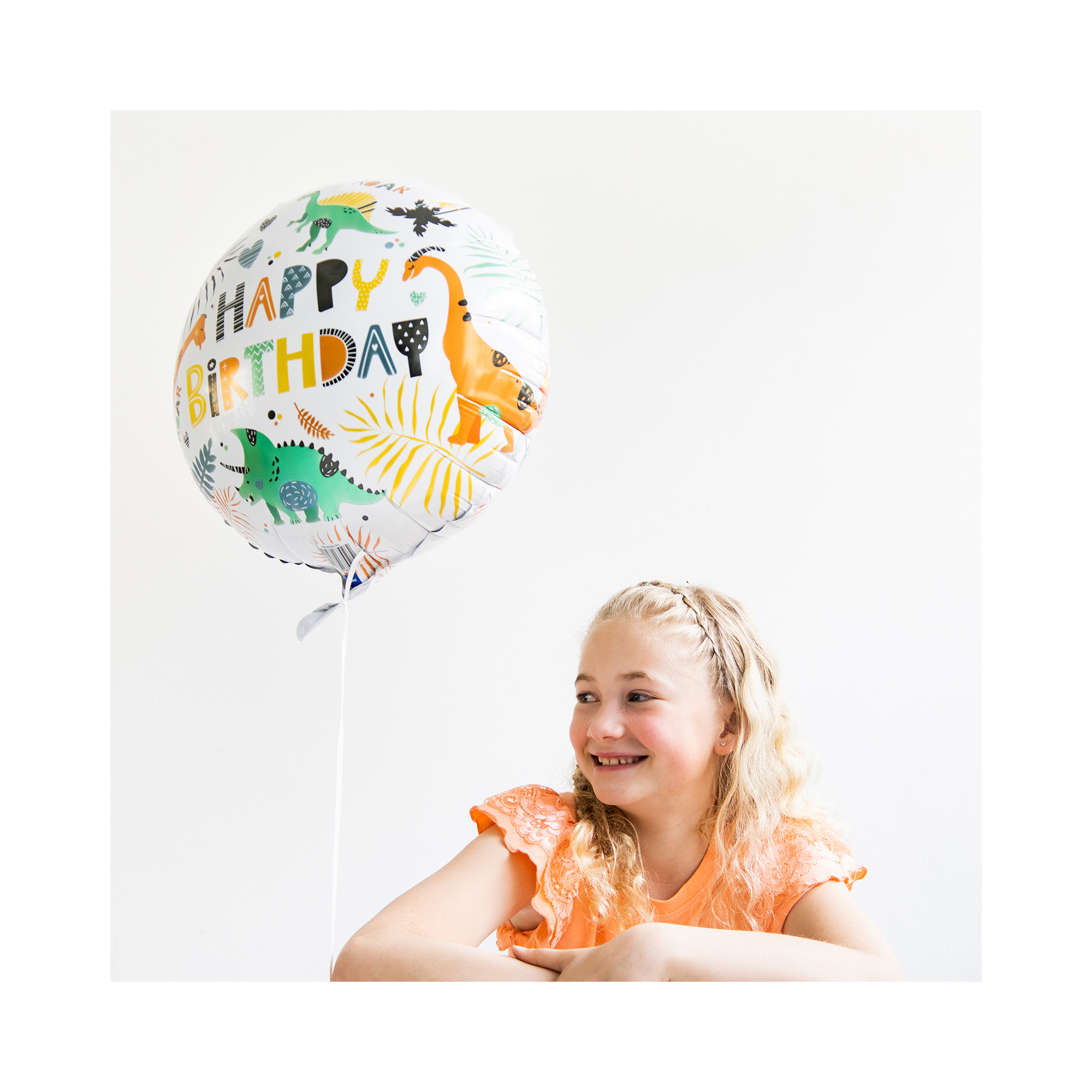 Kulatý fóliový balónek s potiskem dinosaurů a nápisu Happy Birthday skvěle doplní výzdobu dětské tematické oslavy.  Balónek je v bílé barvě s veselým barevným potiskem. Pro další dekorace a doplňky s dino motivem můžete prozkoumat naši tematickou kategorii Dinosauři. Rozměr: 18" – 45 cm Materiál: pevná fólie Balení obsahuje: 1 ks balónku Balónek je možné nafukovat vzduchem i heliem.