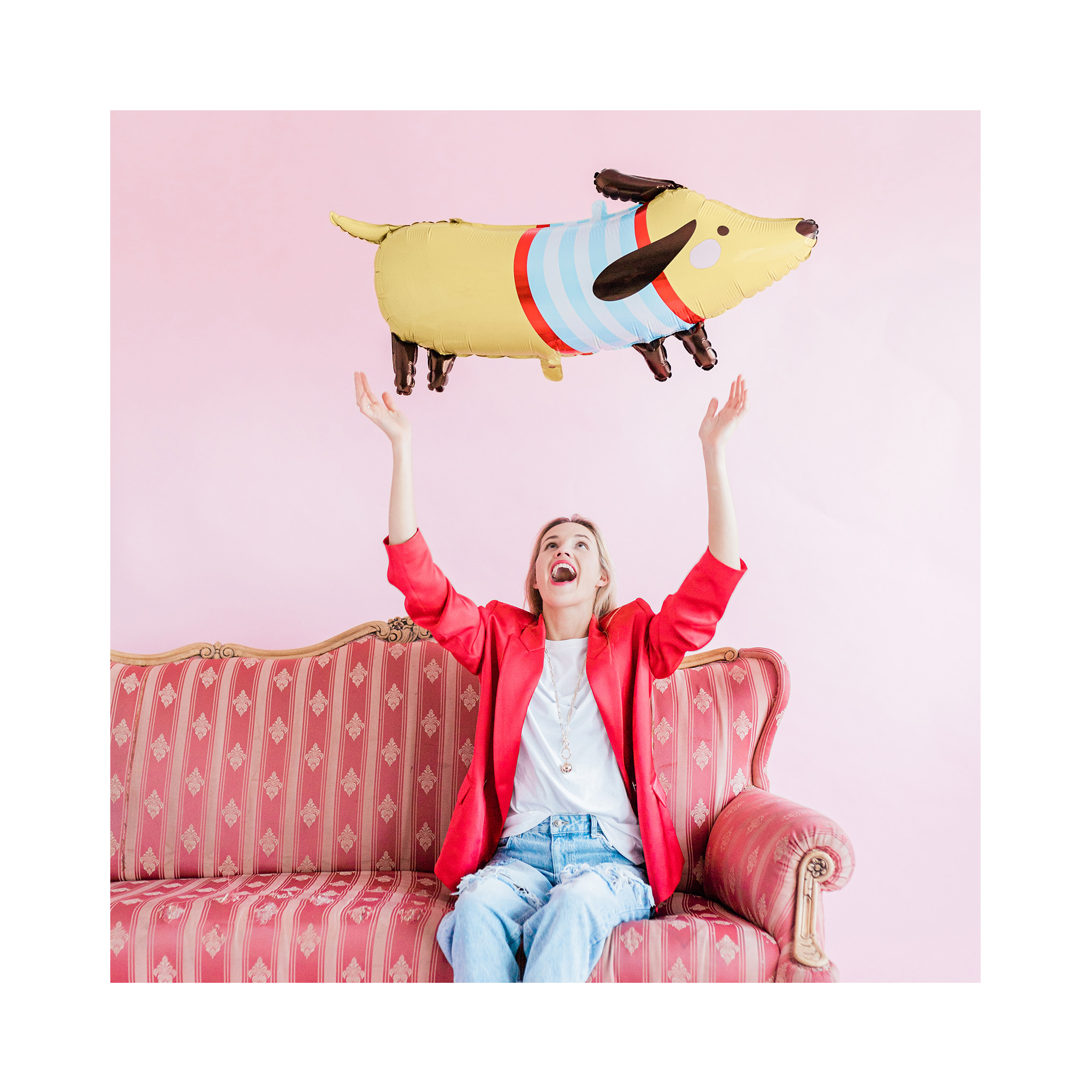 Fóliový balónek ve tvaru jezevčíka je veselou dekorací na dětskou narozeninovou oslavu nebo na tematickou psí či zvířecí párty. Tento roztomilý balónek můžete zkombinovat s dalšími zvířecími párty doplňky a dekoracemi v naší sekci Zvířátka. Velikost/rozměr: 36 " – 91 cm Materiál: pevná fólie Balení obsahuje: 1 ks balónku Balónek je možné nafukovat vzduchem i heliem.
