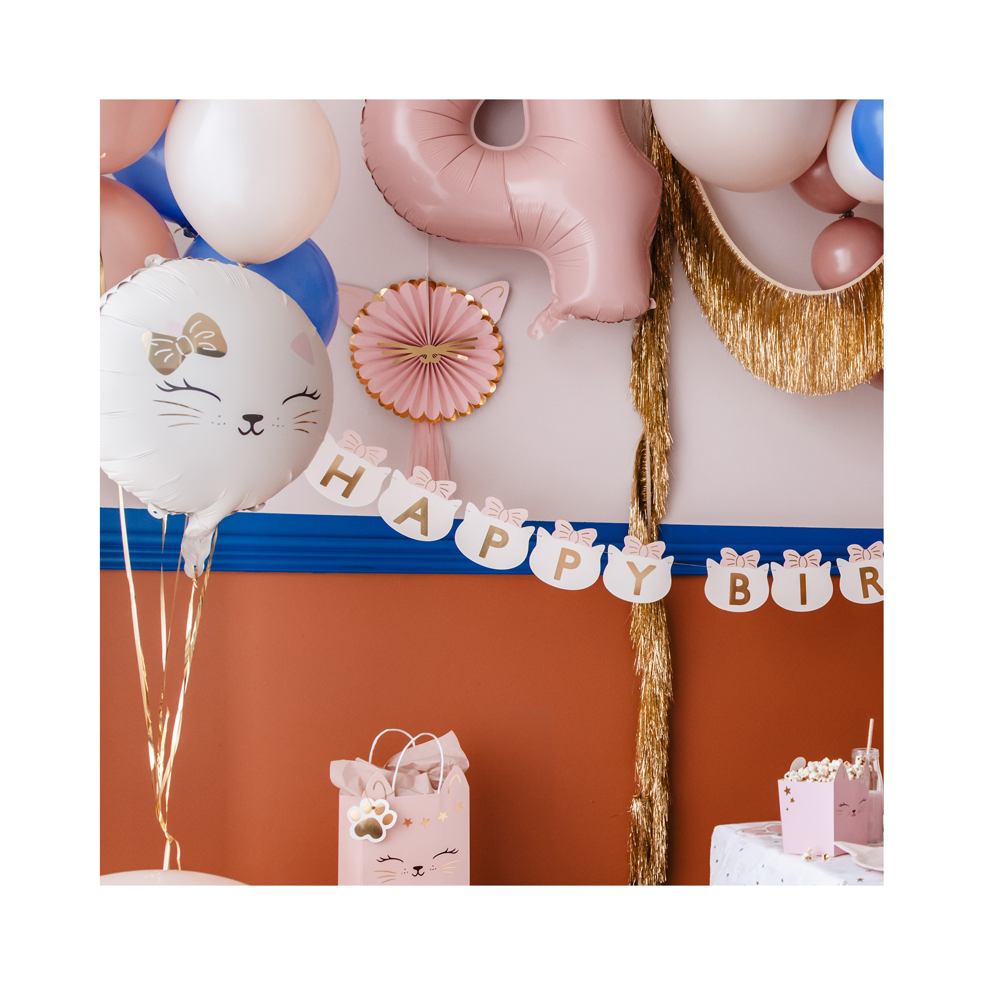 Kulatý fóliový balónek ve světlé barvě a ve tvaru kočičí hlavy s mašličkou je ideální jako výzdoba dětské narozeninové oslavy nebo tematické párty. Tento roztomilý balónek můžete zkombinovat s dalšími kočičími párty doplňky a dekoracemi v naší sekci Kočičky. Velikost/rozměr: 18" – 45 cm Materiál: pevná fólie Balení obsahuje: 1 ks Balónky je možné nafukovat vzduchem i heliem.