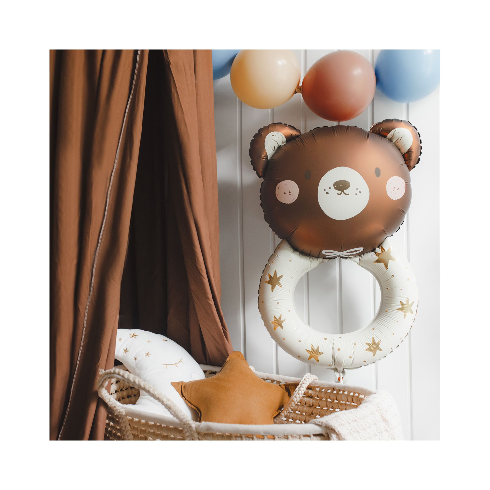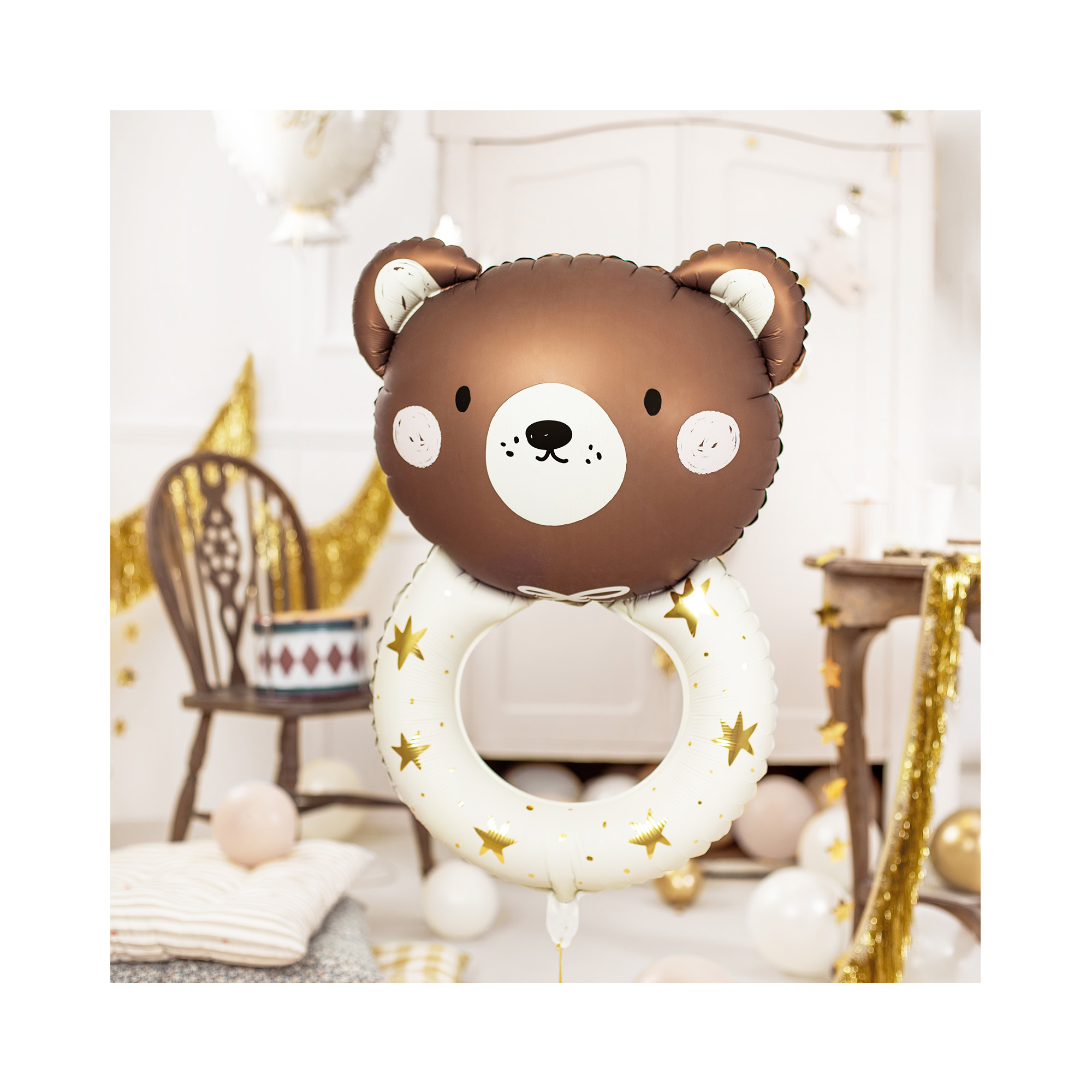 Fóliový balónek ve tvaru chrastítka s roztomilým medvídkem je ideální jako dekorace na oslavu narození dítěte nebo baby shower. Tento balónek jistě děti potěší a bude zábavnou dekorací pokojíčku. Pro další párty doplňky či dekorace v motivu přivítání dítěte můžete navštívit naši sekci Baby shower a narození dítěte. Velikost/rozměr: 35" – 89 cm Materiál: pevná fólie Balení obsahuje: 1 ks Balónky je možné nafukovat vzduchem i heliem.