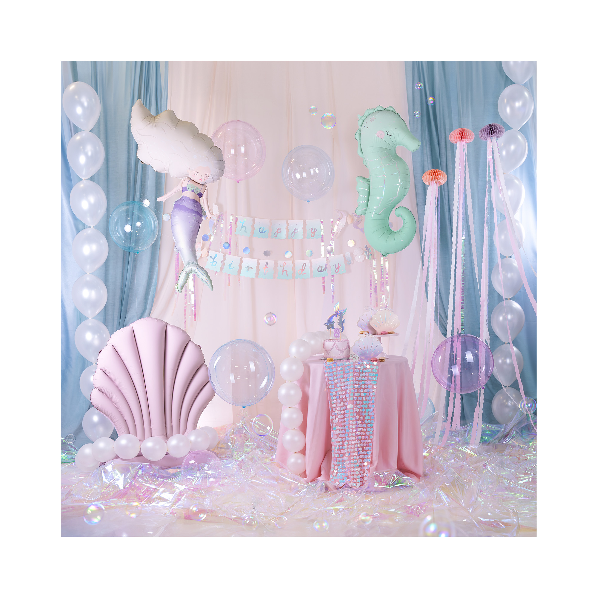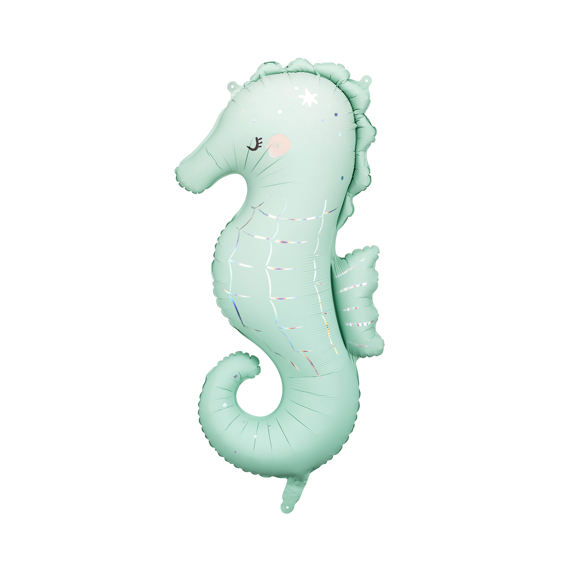 Fóliový balónek ve tvaru mořského koníka je poutavý doplněk pro tematickou oslavu v motivu podmořského světa, mořské víly nebo Mermaid párty. Tento balónek je laděný do světle zelené barvy a zdobí ho holografické detaily. Pro další párty produkty v motivu podmořského světa a mořské panny můžete prozkoumat naši kategorii Podmořský svět. Velikost/rozměr: 110 × 63 cm (rozměry po nafouknutí 98 × 47 cm) Materiál: pevná fólie Balení obsahuje: 1 ks balónku a brčko pro snadné nafouknutí Balónek je možné nafukovat vzduchem i heliem.