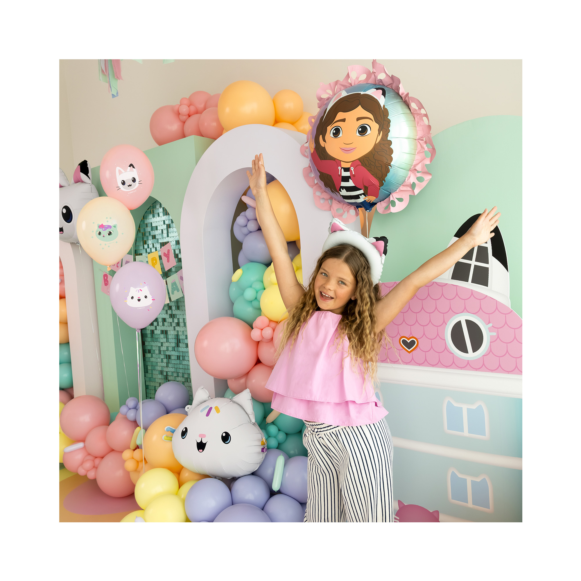 Kulatý fóliový balónek s volánky a veselým potiskem Gábi je skvělou dekorací na dětskou narozeninovou oslavu nebo tematickou párty. Balónek je v motivu oblíbeného dětského animovaného seriálu Gábinin kouzelný domek (Gabby’s Dollhouse). Hlavní hrdinkou je Gábina, zvídavá a milá holčička, která se pomocí kouzel zmenší a objevuje kouzelný svět svého domečku plný kočičích kamarádů, her, tvoření a fantazie. Každá epizoda přináší barevná dobrodružství, kreativní nápady a pozitivní poselství, díky nimž si seriál zamilovaly děti po celém světě. Pro další párty doplňky a dekorace s motivem Gábi nebo koček můžete navštívit naše tematické kategorie Gábinin kouzelný domek nebo Kočičky. Rozměry: 52 × 52 cm po nafouknutí (78 × 71 cm před nafouknutím) Materiál: pevná fólie Balení obsahuje: 1 ks balónku a brčko pro snadné nafouknutí Balónek je možné nafukovat vzduchem i heliem.