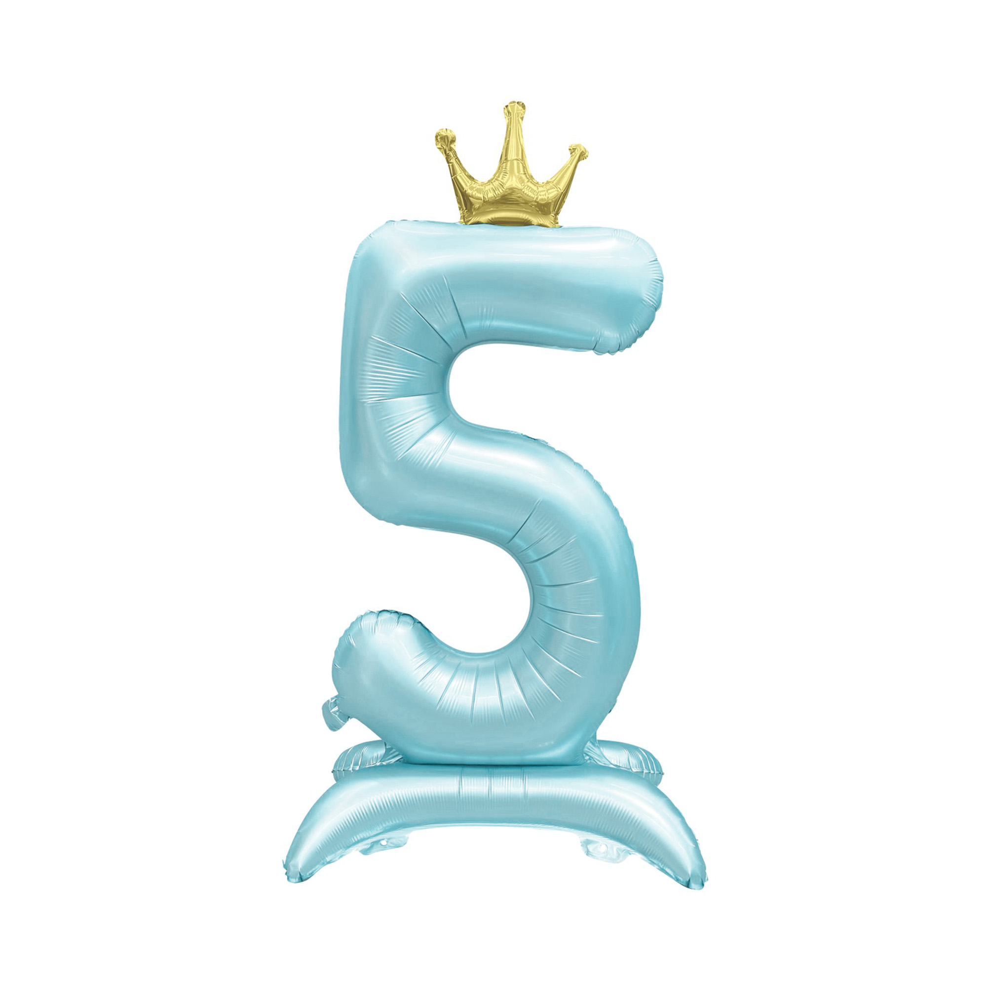 Balónek fóliový Stojící číslo 5 s korunkou světle modré 82 cm Albi