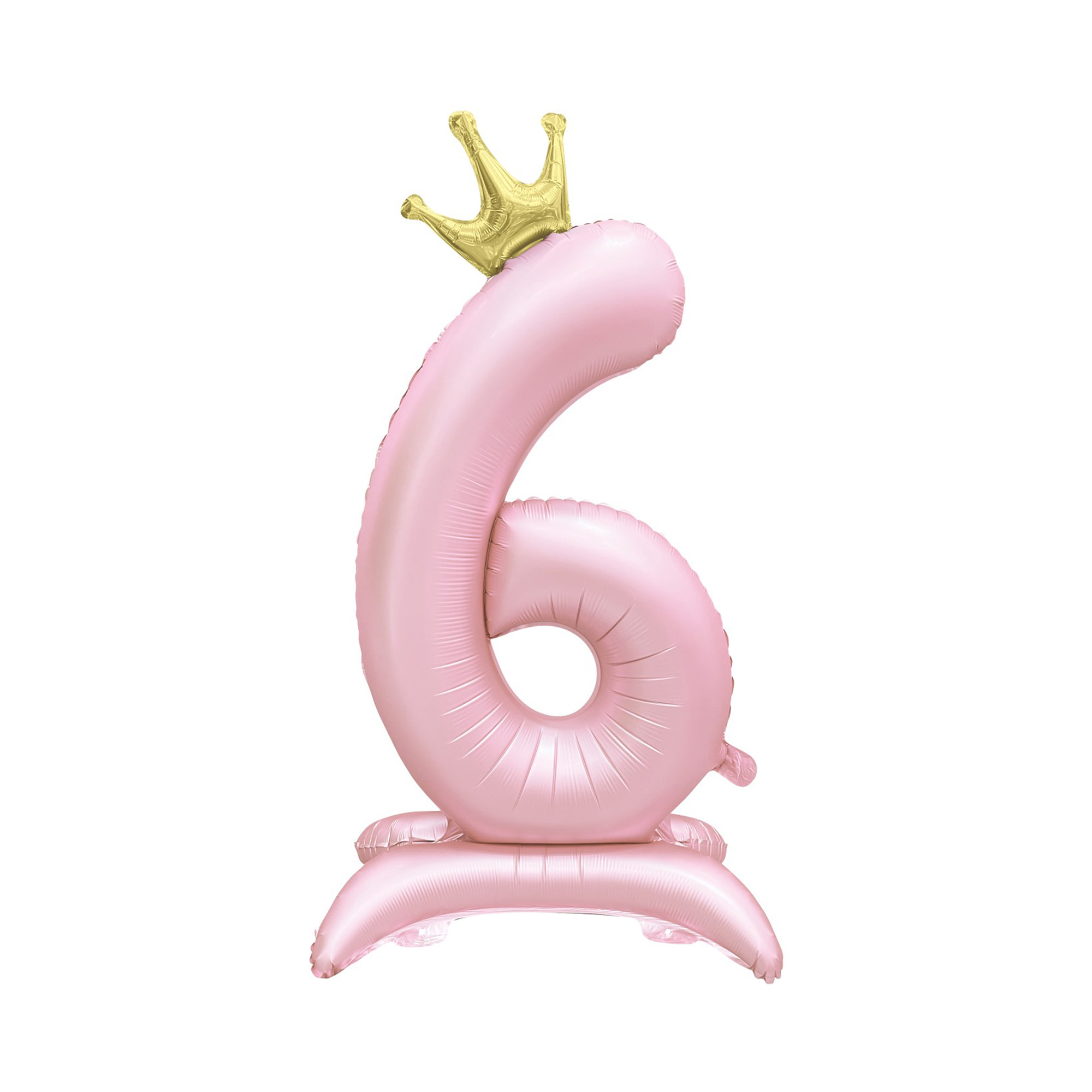 Balónek fóliový Stojící číslo 6 s korunkou světle růžové 82 cm Albi