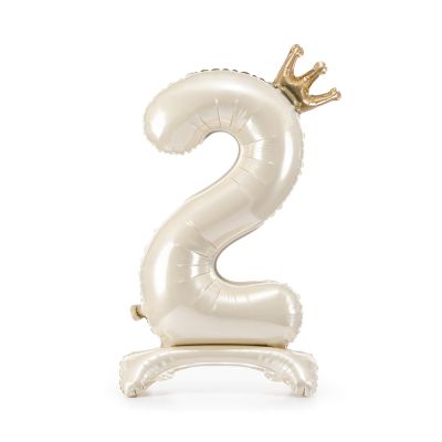 Balónek fóliový Stojící číslo s korunkou krémová 84 cm – Číslice 2 Albi