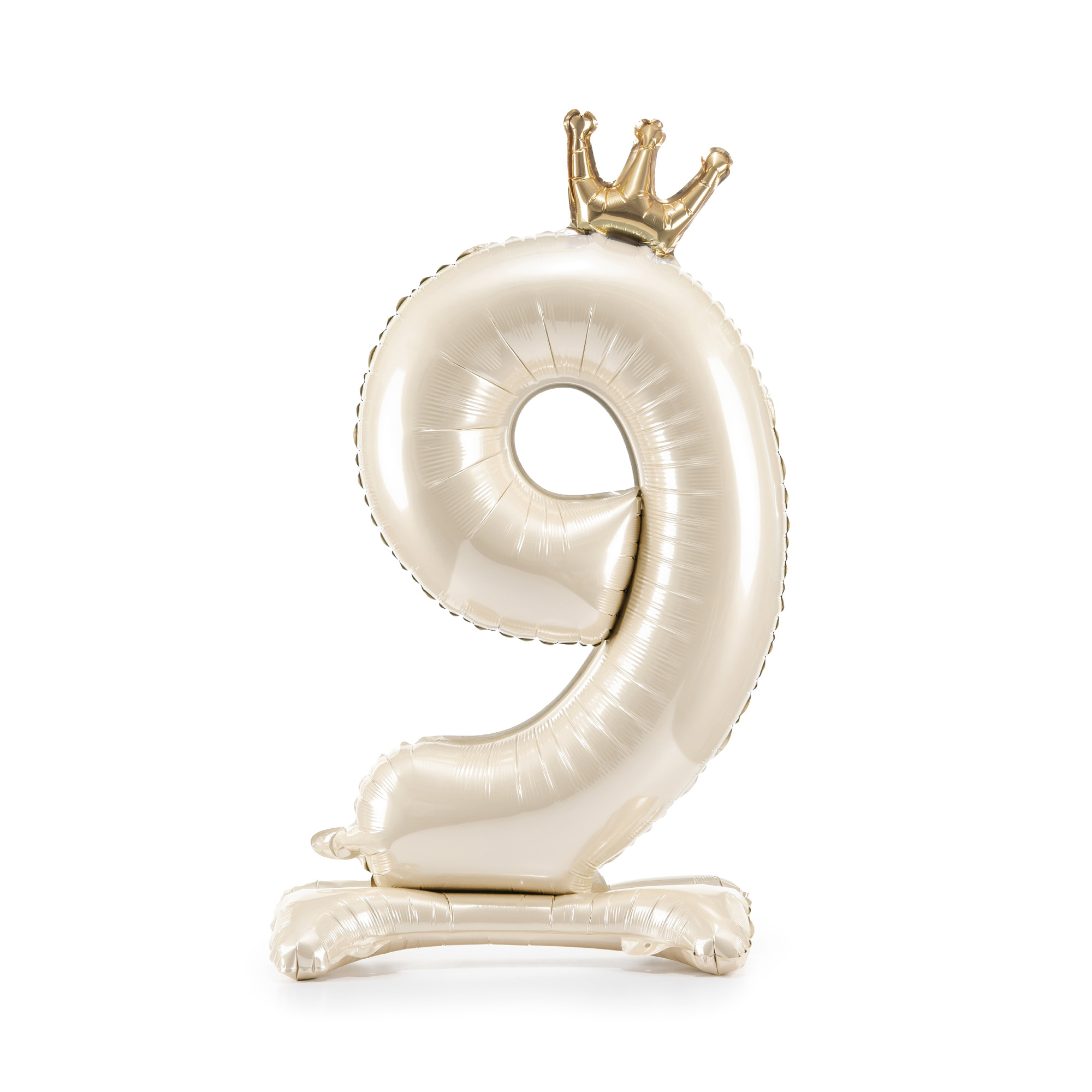 Balónek fóliový Stojící číslo s korunkou krémová 84 cm – Číslice 9 Albi