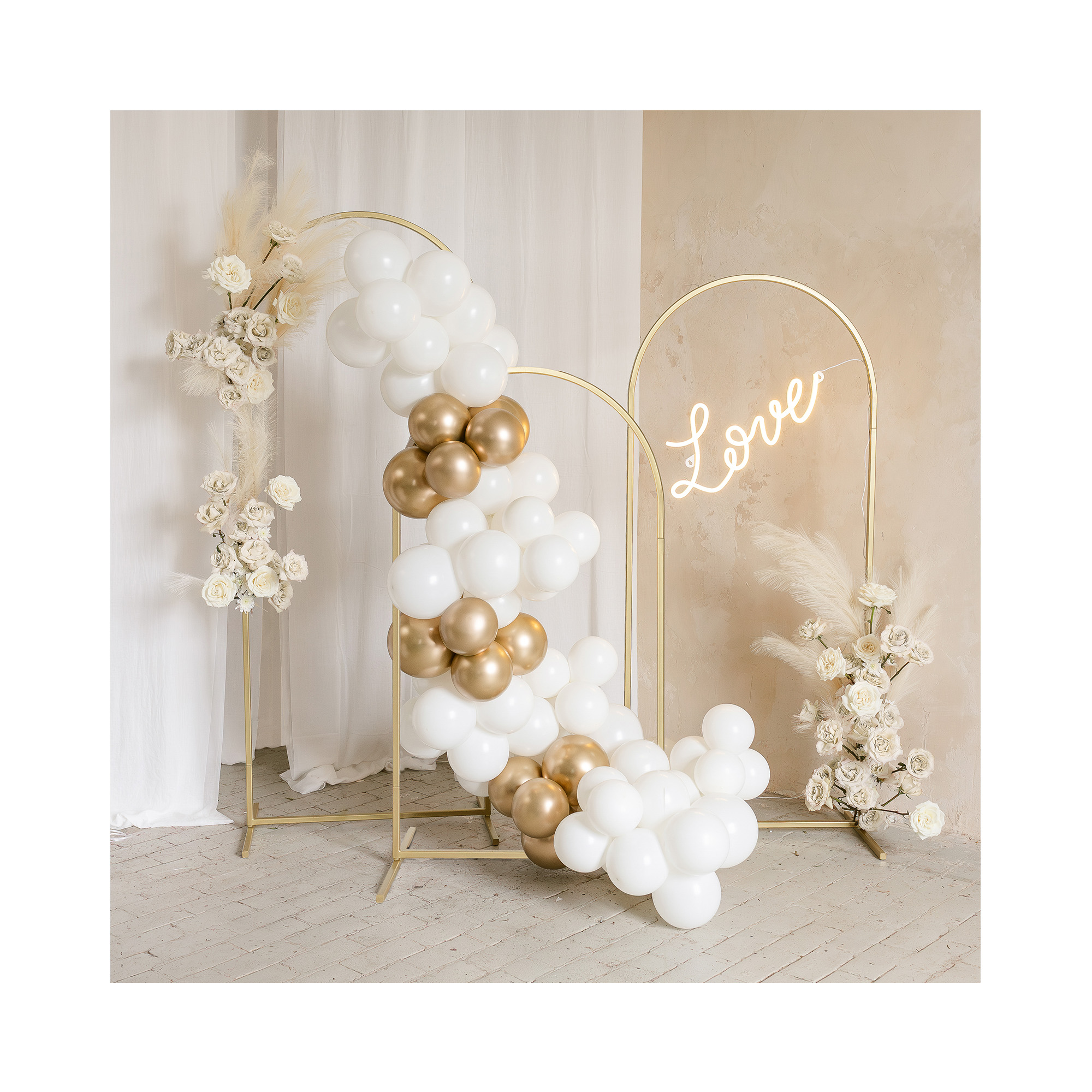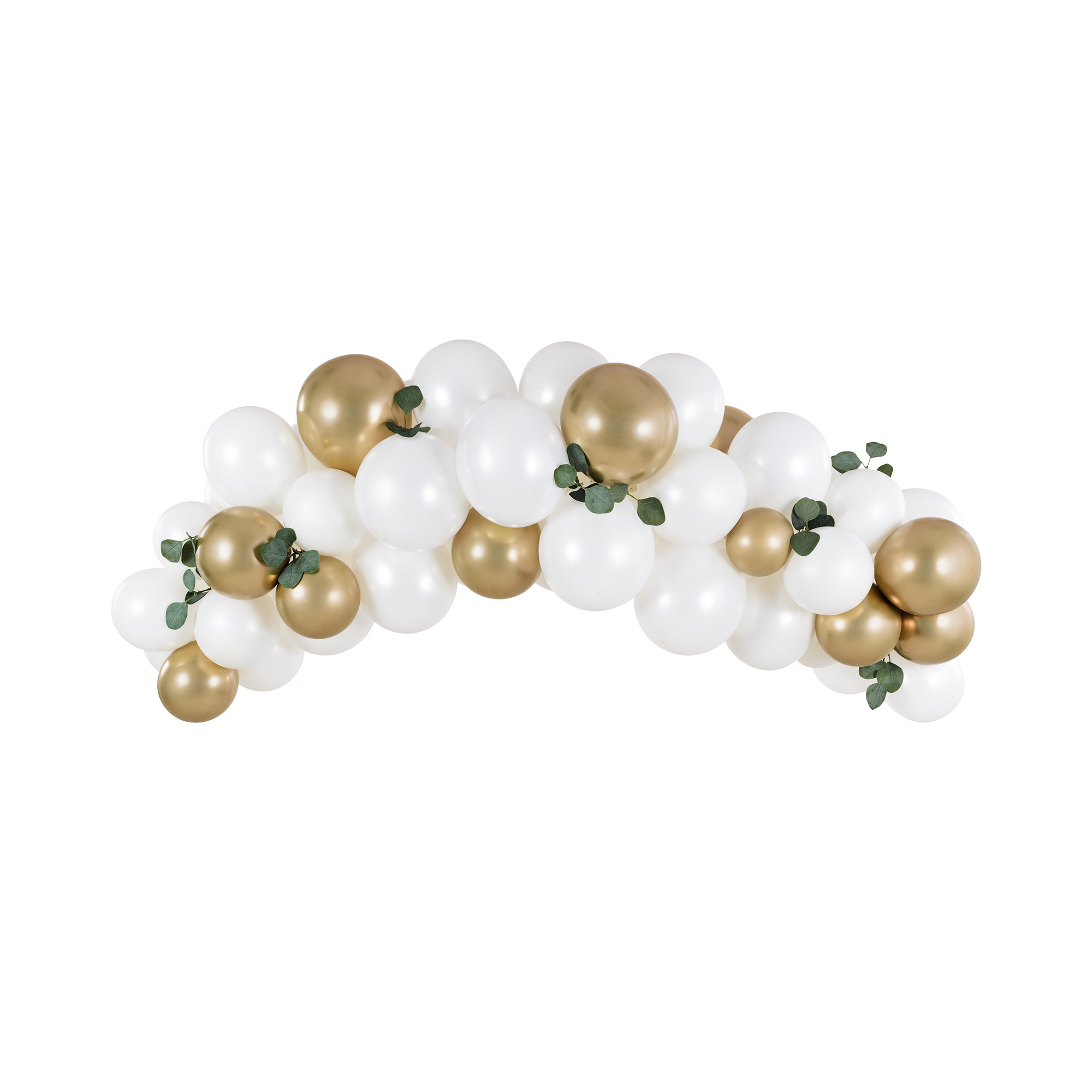 Balónková girlanda Svatba v sadě z které můžete vytvořit různé tvary dekorace. Balónky jsou v bílé a zlaté barvě. Tuto balónkovou girlandu můžete použít jako dekoraci na svatbu, narozeninovou oslavu či jako výzdobu párty fotokoutku. Pro další doplňky a dekorace v podobném motivu můžete navštívit naši sekci Svatba a rozlučka. Velikost/rozměr: 2 m Balení obsahuje: 49 ks bílých latexových balónků o velikosti 12" – 30 cm, 11 ks zlatých latexových balónků o velikosti 12" – 30 cm, speciální pásku a návod
