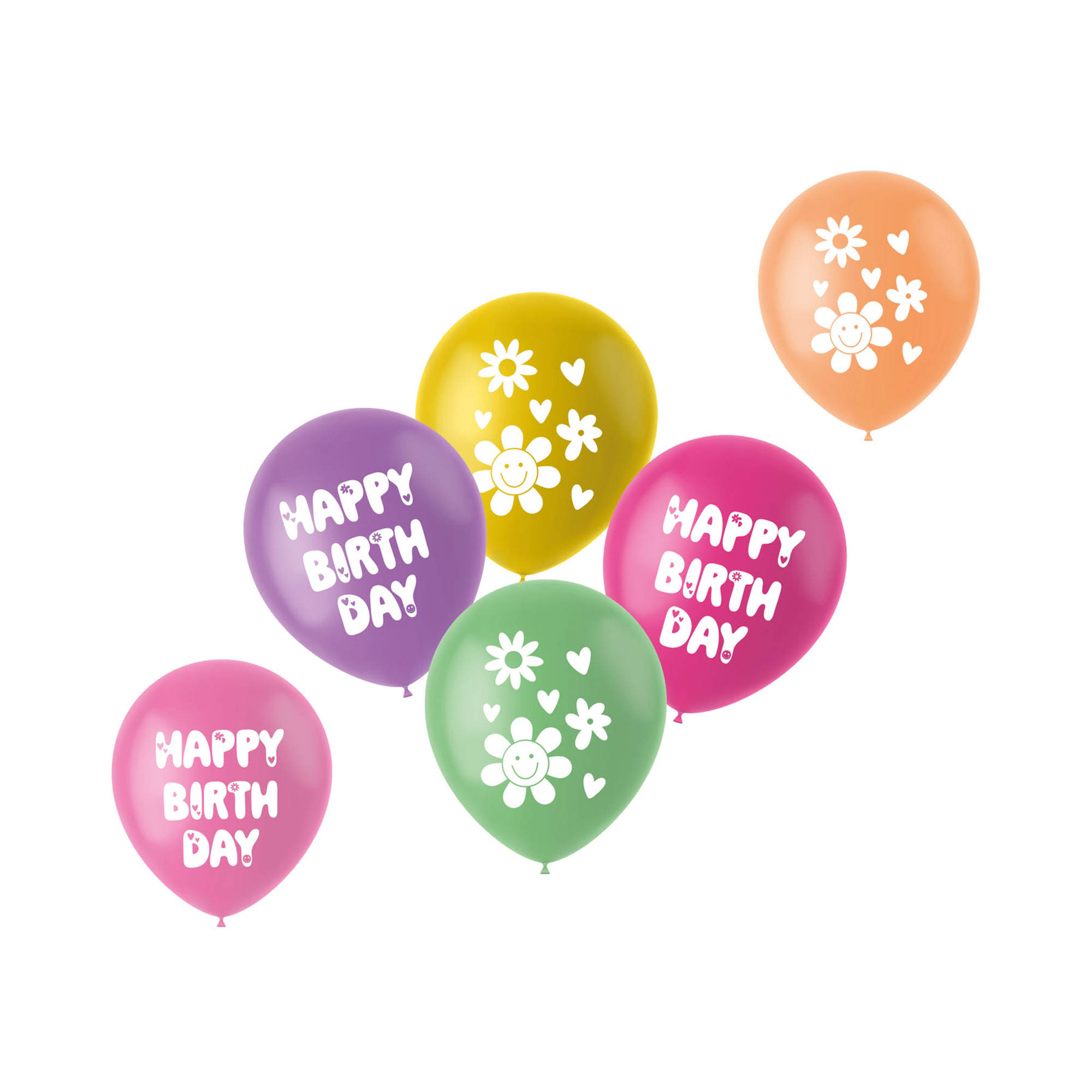 Set latexových balónků s veselým potiskem Boho Girlz. Balónky v sadě mají žlutou, růžovou, tmavě růžovou, zelenou, broskvovou a fialovou barvu. Tři mají na sobě potisk textu "Happy Birhday" a tři usměvavou květinu, srdíčka a květiny. Tento set balónků můžete zkombinovat s dalšími párty doplňky a dekoracemi z veselé řady Boho Girlz. Velikost/rozměr: 33 cm Materiál: latex Balení obsahuje: 6 ks balónků Balónky je možné nafukovat vzduchem i heliem.