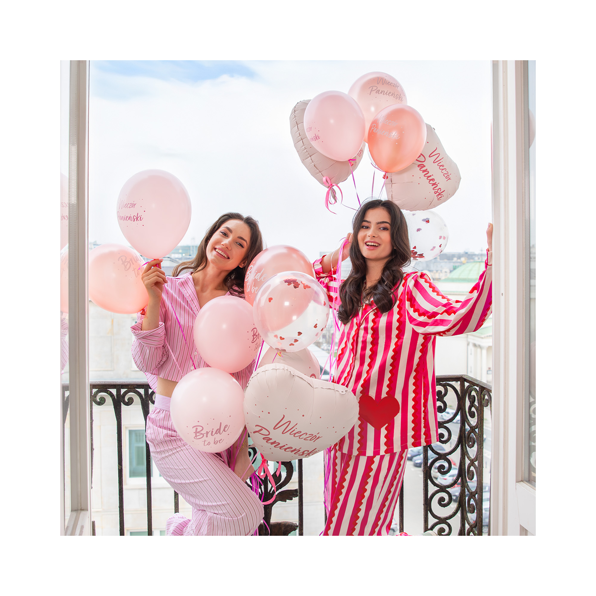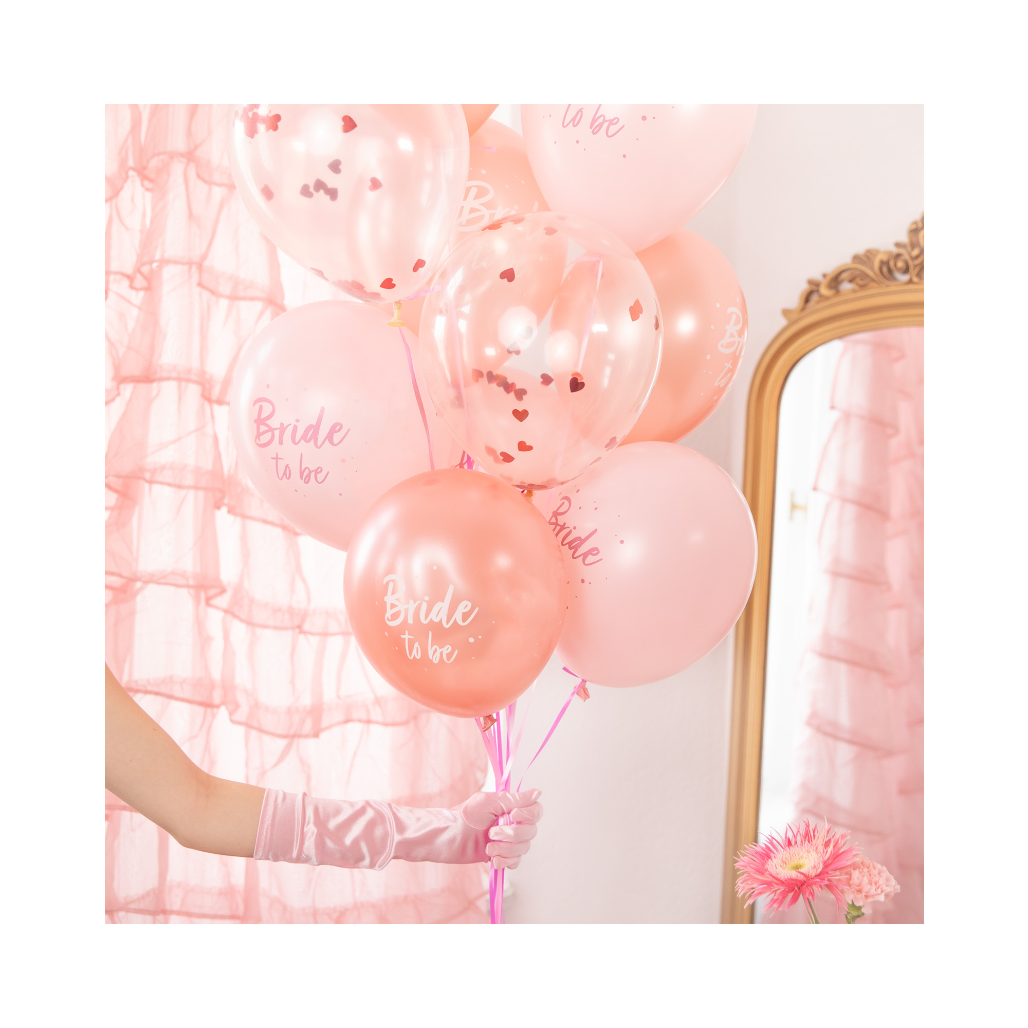 Sada šesti latexových balónků s potiskem nápisu "Bride to be" a srdíčkovými konfetami – perfektní doplněk pro dámskou rozlučkovou párty. Obsah balení tvoří dva rose gold balónky s bílým potiskem nápisu "Bride to be", dva světle růžové balónky s růžovým potiskem nápisu "Bride to be" a dva průhledné balónky s růžovými konfetami ve tvaru srdce. Balónky jsou vyrobeny z přírodního latexu, jsou 100% biologicky rozložitelné a splňují nejvyšší standardy kvality. Pro další doplňky a dekorace v rozlučkovém motivu můžete navštívit naši sekci Svatba a rozlučka. Rozměr: 12" – 30 cm Materiál: latex Balení obsahuje: 6 ks balónků Balónky je možné nafukovat vzduchem i heliem.
