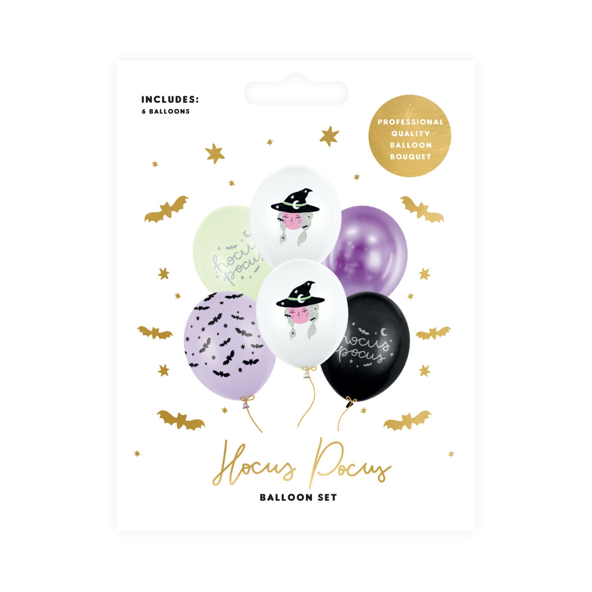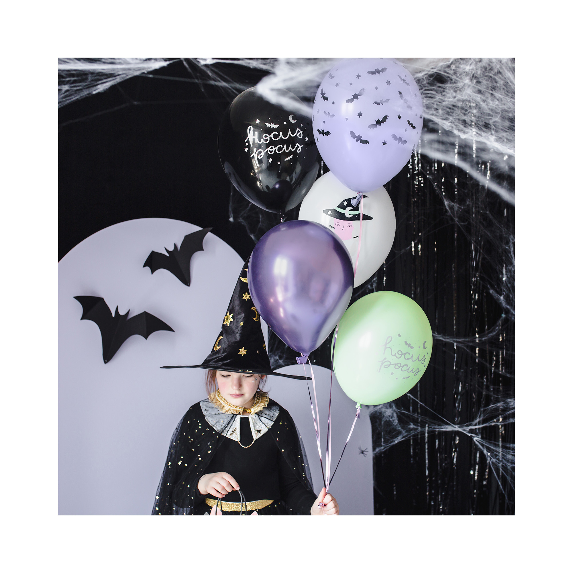 Sada šesti latexových balónků se strašidelnými motivy skvěle doladí výzdobu halloweenské párty nebo oslavy pálení čarodějnic. V sadě najdete šest balónků s čarodějnickým potiskem – jeden černý a jeden zelený s nápisem „hocus pocus“, jeden světle fialový s černými netopýry, jeden fialový a dva bílé s motivem čarodějnice se špičatým kloboukem. Další párty doplňky a dekorace se strašidelným motivem naleznete v naší tematické kategorii Halloween nebo Pálení čarodějnic. Velikost: 12" – 30 cm Materiál: latex Balení obsahuje: 6 latexových balónků Balónky je možné nafukovat vzduchem i heliem.