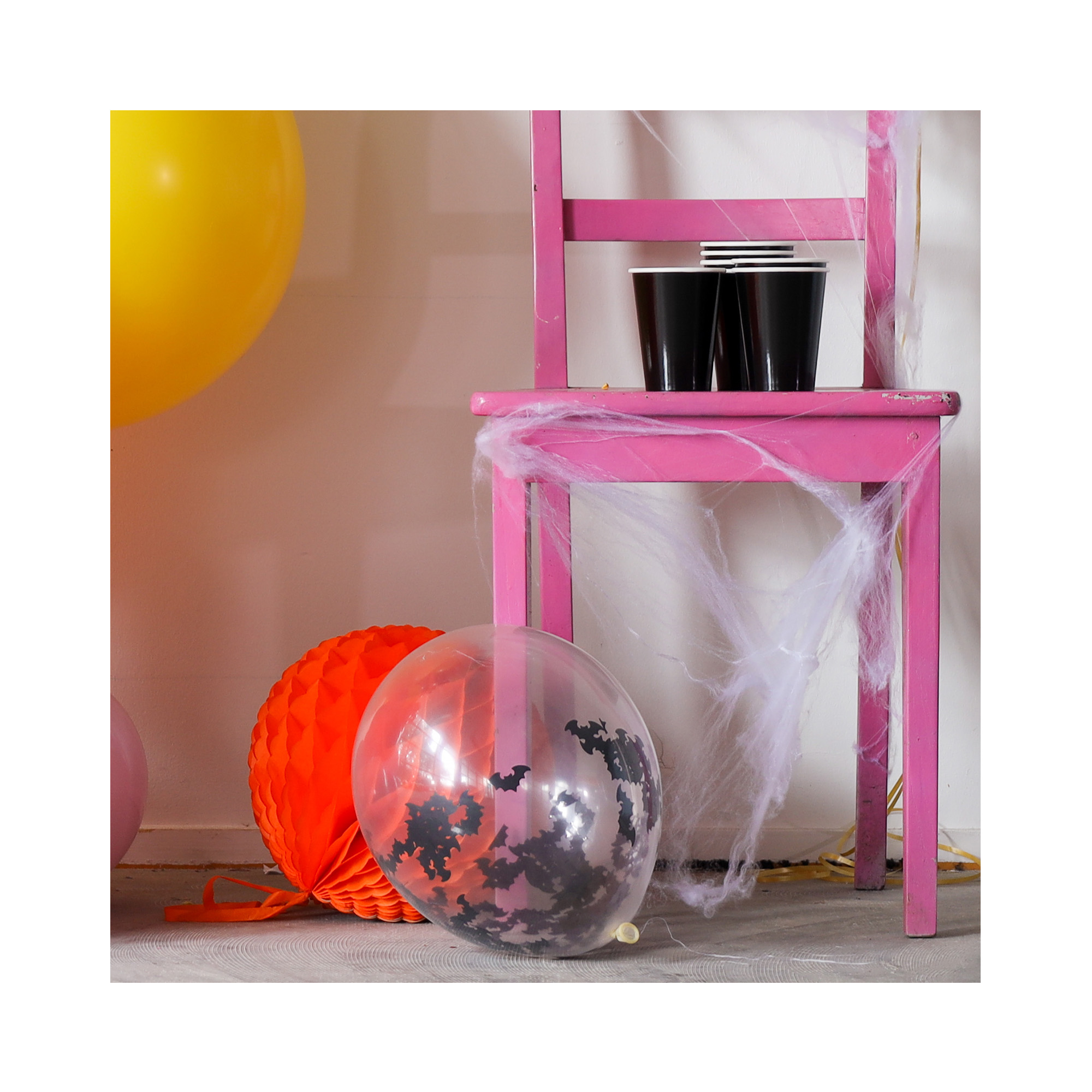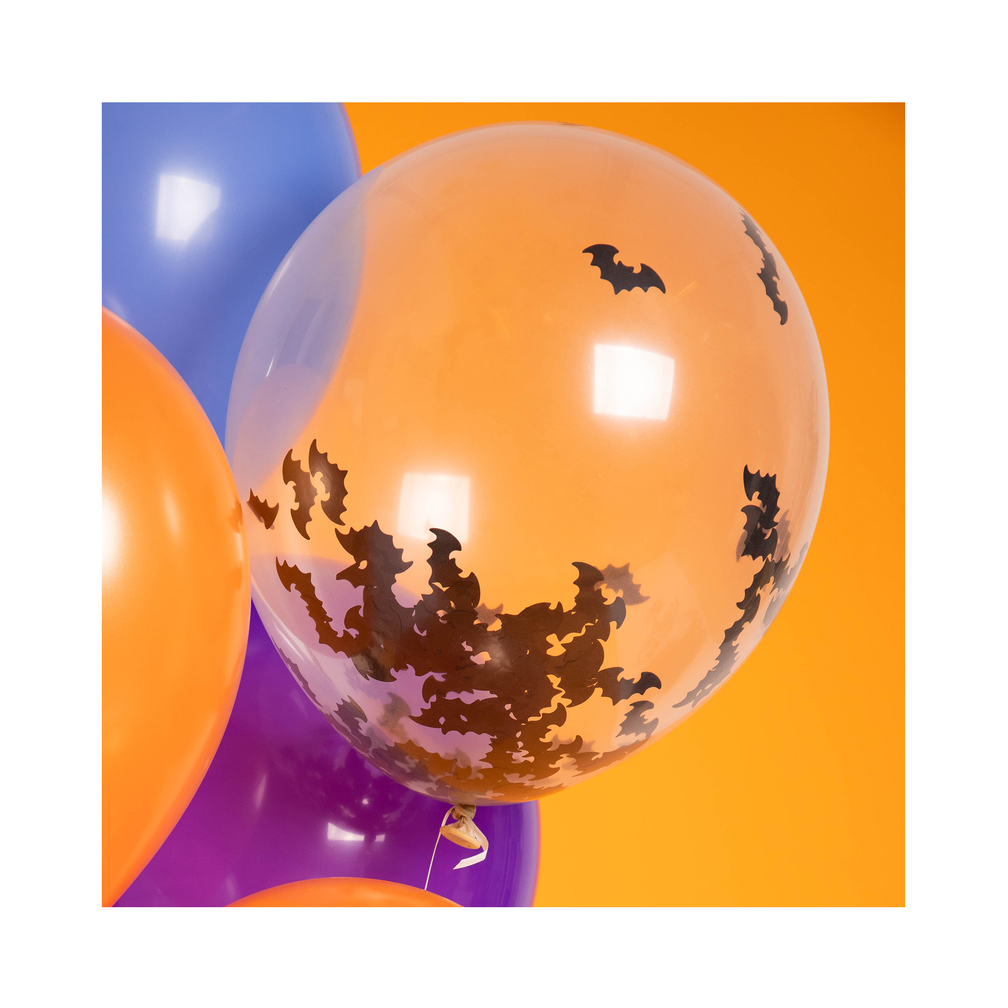 Strašidelný set latexových balónků s konfetami ve tvaru netopýrů je ideální pro halloweenskou párty či tématický večírek. Velikost/rozměr: 12" – 30 cm Materiál: latex Balení obsahuje: 4 ks Balónky je možné nafukovat vzduchem i heliem.