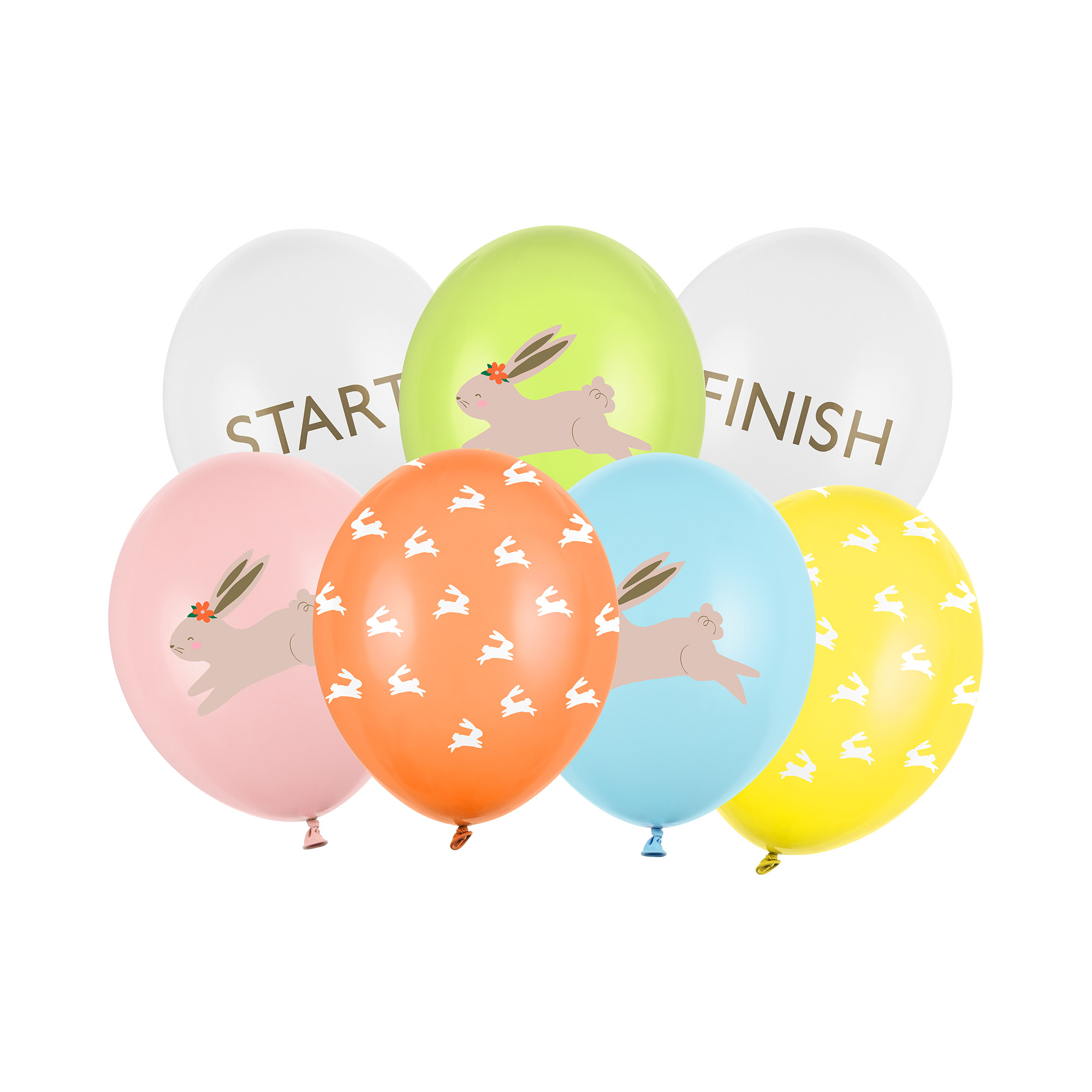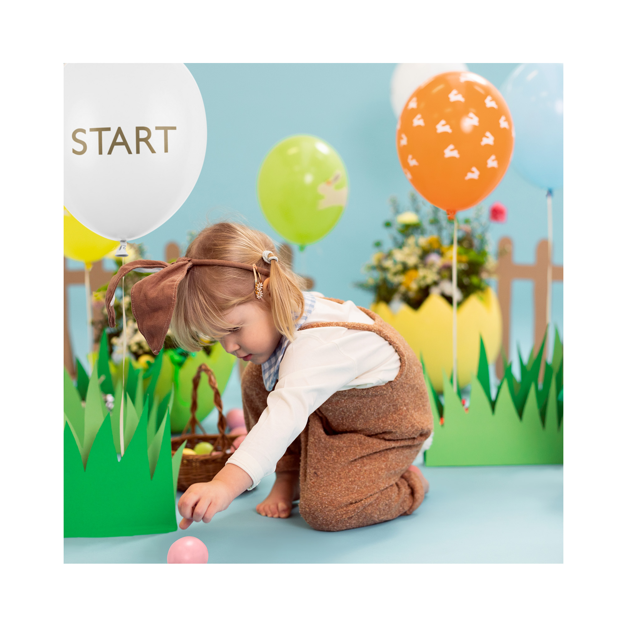 Balení sedmi barevných latexových balónků s mixem zaječích motivů a herními nápisy rozveselí každou velikonoční oslavu nebo dětskou jarní bojovku! Sada obsahuje dva bílé balónky s nápisem START a FINISH, které jsou jako stvořené pro vyznačení trasy při jarních závodech nebo oblíbeném hledání vajíček. Doplňují je tři pastelové balónky (zelený, růžový a modrý) s velkým obrázkem skákajícího zajíčka a dva pestré balónky (oranžový a žlutý) poseté drobnými bílými siluetami zajíců. Další jarní párty doplňky a dekorace najdete v naší kategorii Jaro a květiny. Rozměr: 12" – 30 cm Materiál: latex Balení obsahuje: 7 ks balónků v mixu barev a motivů Balónky je možné nafukovat vzduchem i heliem.