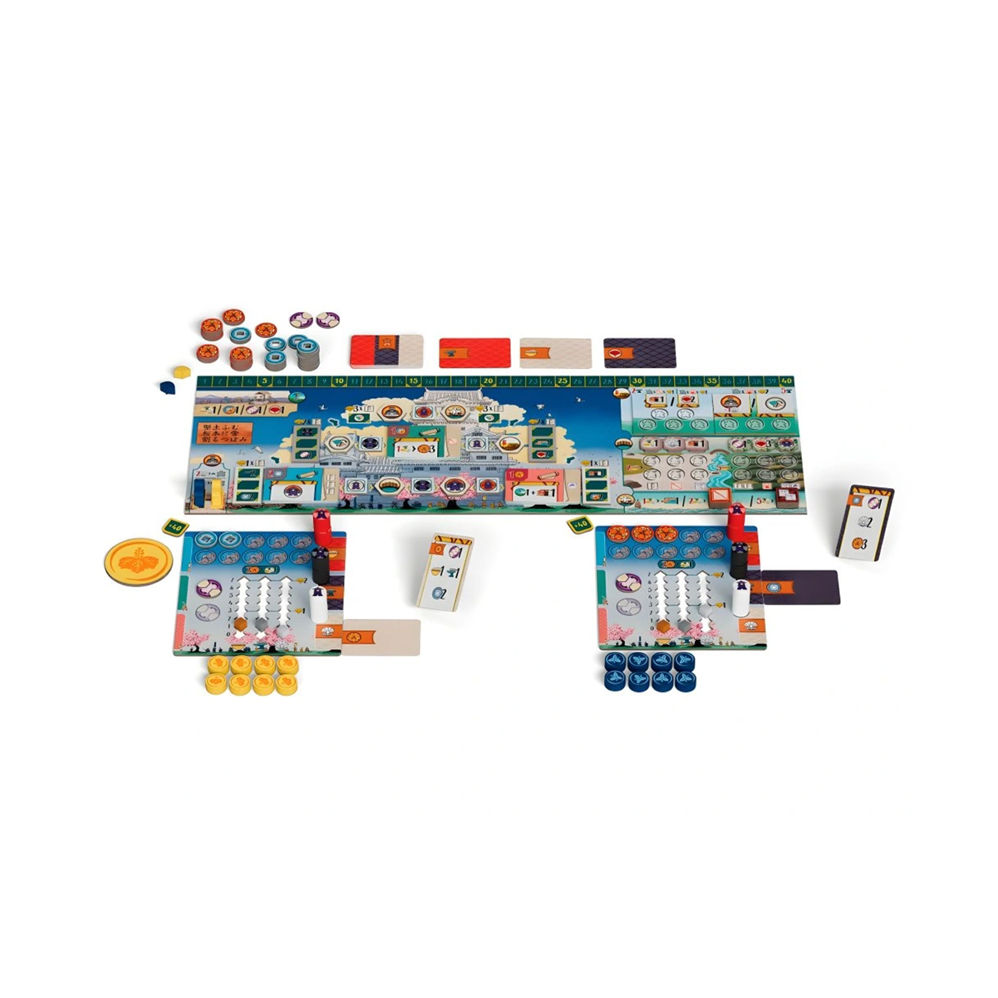 Bílý hrad: Duel – staňte se nejvlivnějším daimjóem v Japonsku 16. století! V této strategické hře pro 2 hráče se ocitáte v éře Nanban, kdy do země proudí západní technologie a bohatství. Vaším úkolem je ovládnout prestižní hrad Himedži a posílit moc svého klanu skrze diplomacii i obchod. Pomocí unikátního systému umisťování a odebírání válečků luceren aktivujete své panství, vysíláte dvořany na společenský žebříček a získáváte cenné karty vlivu. Klíčem k vítězství je precizní taktika a správné načasování akcí během dvou intenzivních kol. Hra je určena pro 2 hráče od 10 let a herní komponenty jsou zcela jazykově nezávislé. Hra Bílý hrad: Duel obsahuje: 57 karet, 8 destiček cvičiště, 6 žetonů aktivace, 20 mincí, 20 pečetí daimjóa, 2 destičky bodů, 6 destiček společenského žebříčku, 8 žetonů zahrad, 4 žetony změny aktivace, 6 žetonů zboží, 2 desky osobních panství, 1 herní plán, 12 válečků luceren, 1 žeton začínajícího hráče, 6 žetonů lokací, 2 dvořany (dřevěné figurky), 6 kostiček jako ukazatele zdrojů, 2 ukazatele bodů klanů, 16 pečetí klanů, česká pravidla.