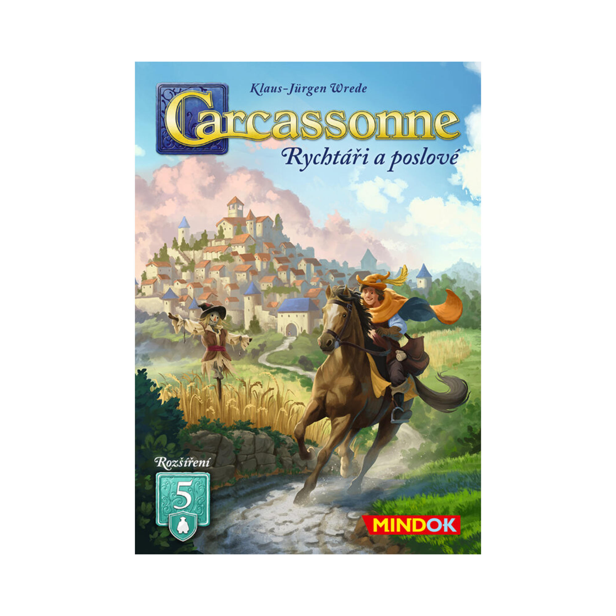 Zapojte do hry rychtáře, posly a strašáky s rozšířením Rychtáři a poslové pro hru Carcassonne. Stejně jako ostatní rozšíření, i toto nemůžete hrát bez základní hry, ale můžete ho kombinovat s dalšími rozšířeními. Toto rozšíření přináší do hry nové figurky s jedinečnými schopnostmi a 12 nových kartiček krajiny. Rychtář se uchází o přízeň šlechty. Když je jeho kartička obklopena ze všech čtyř stran, můžete vyměnit jednoho soupeřova rytíře za svého. Jakmile přiložíte kartičku radnice, veškeré sousední území se na dané straně považuje za uzavřené. Rychtáři z přilehlých kartiček jsou povoláni na sněm a vrací se zpět do zásoby. Vyšlete do světa své posly, kteří jsou stejně silní jako běžní družiníci. Po dokončení cesty můžete posla přemístit do sousedního města nebo na jinou sousední cestu. Na louky, které jsou obsazené, můžete umístit strašáka. Jakmile je kartička se strašákem obklopena ze všech čtyř stran, můžete ho proměnit v sedláka a položit ho na hrací plán, kde bude počítán jako standardní družiník s plnou silou. Rozšíření Rychtáři a poslové tak nabízí nové strategické možnosti a je skvělou volbou pro hráče, kteří si chtějí hru ještě více okořenit. Páté rozšíření Carcassonne – Rychtáři a poslové: 12 kartiček krajiny, 6 kartiček radnic, 6 figurek rychtářů, 6 figurek poslů a 6 figurek strašáků. Nejedná se o samostatnou hru. Rozšíření lze hrát pouze se základní hrou Carcassonne.