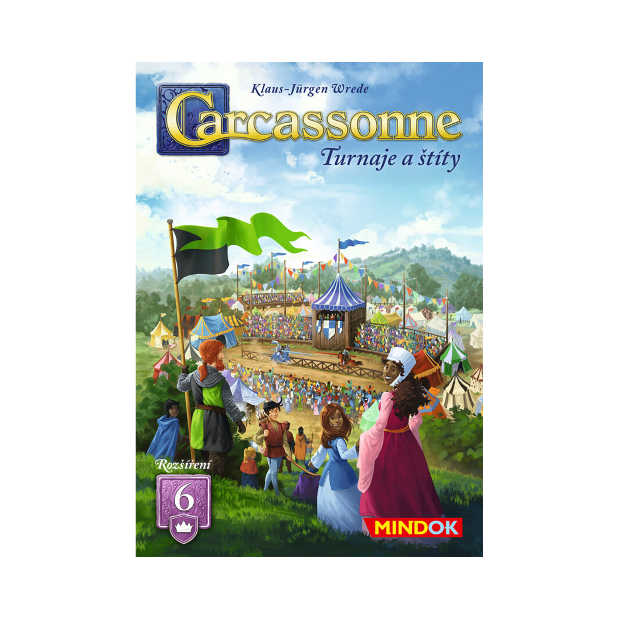 Vítejte v novém rozšíření legendární hry Carcassonne, kde se zapojíte do velkolepého královského turnaje. Vyšlete své rytíře, lupiče a sedláky, aby pro vás nasbírali co nejvíce trofejí a získali tak slávu a vítězství. Buďte strategičtí a opatrně volte, kterého družiníka přihlásíte do turnaje, protože každý z nich disponuje jedinečnou silou. Pokud se vám podaří zvítězit, bude na vaši počest postavena socha s vaším štítem, která vám přinese cenné body! Rozšíření Turnaje a štíty přináší do hry nové prvky a mechanismy, které obohatí vaši strategii a zajistí mnoho zábavných okamžiků. V krabici naleznete sadu kartiček, které rozšíří vaše hrací pole, a speciální turnajovou desku, která se umisťuje doprostřed stolu. Součástí hry jsou i kartičky trofejí, které získáváte za vítězství v turnaji, a sady štítů s různými hodnotami, které přiřazujete svým družiníkům. Carcassonne: Turnaje a štíty je šesté rozšíření oblíbené hry, které se neobejde bez základní verze. Skvěle se hodí pro hráče, kteří chtějí do klasického Carcassonne přidat novou vrstvu taktiky a napětí, a to díky soubojům o trofeje a bodování na konci hry, které závisí na umístěných štítech. Šesté rozšíření Carcassonne – Turnaje a štíty obsahuje: 9 kartiček krajiny, 12 kartiček trofejí, 1 oboustranná deska turnajů (s řekou/bez řeky), 30 štítů (6 sad po 5 štítech s hodnotami 0, 1, 2, 3, 5) a 1 koruna. Nejedná se o samostatnou hru. Rozšíření lze hrát pouze se základní hrou Carcassonne.