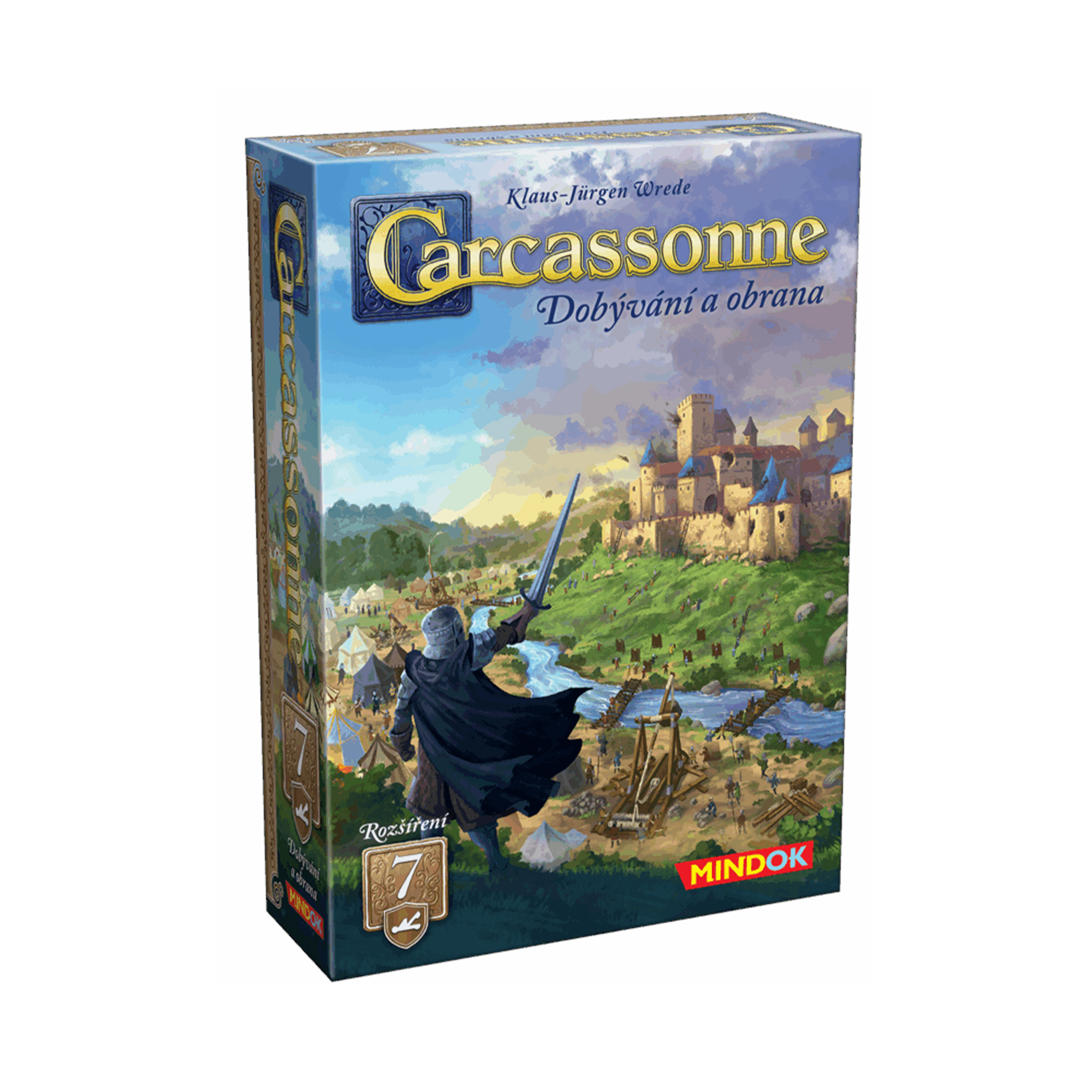 Připravte se na obranu! V sedmém rozšíření populární hry Carcassonne čelíte novým hrozbám. Vaše prosperující město je napadeno nepřáteli, a je na vás, abyste posílili hradby a ochránili své území. Vysílejte své lidi na opevnění, abyste získali cenné body za každého obránce. Ovšem pozor, pokud se obraně nevěnujete dostatečně, hrozí, že přijdete o část svého území, když nepřátelé zaútočí. Rozšíření Dobývání a obrana přináší do hry nové strategické prvky a dynamiku. Herní plán se rozšiřuje o dvojdílnou desku pevnosti s trojími hradbami pro rytíře, lupiče, mnichy a opaty. Při každém umístění figurky na herní plán navíc můžete umístit jednu další na odpovídající hradby pevnosti. Dejte si však pozor na symboly dobývání na nových kartičkách, které mohou vést k umístění katapultů, a dokonce i k nečekaným útokům na vaše hradby. Hra je ideální pro hráče, kteří chtějí do klasického Carcassonne vnést více interakce a napětí. Rozšíření je navrženo tak, aby se dalo kombinovat i s dalšími rozšířeními, a poskytuje tak novou úroveň variability a zábavy. Pamatujte, že toto rozšíření nelze hrát samostatně a vyžaduje základní hru Carcassonne. Sedmé rozšíření Carcassonne – Dobývání a obrana: 18 kartiček krajiny (z toho 17 se symboly dobývání a 1 s řekou a symbolem dobývání), 2 díly desky pevnosti (oboustranné), 3 katapulty a 12 standardních figurek (po 2 v každé barvě). Nejedná se o samostatnou hru. Rozšíření lze hrát pouze se základní hrou Carcassonne.