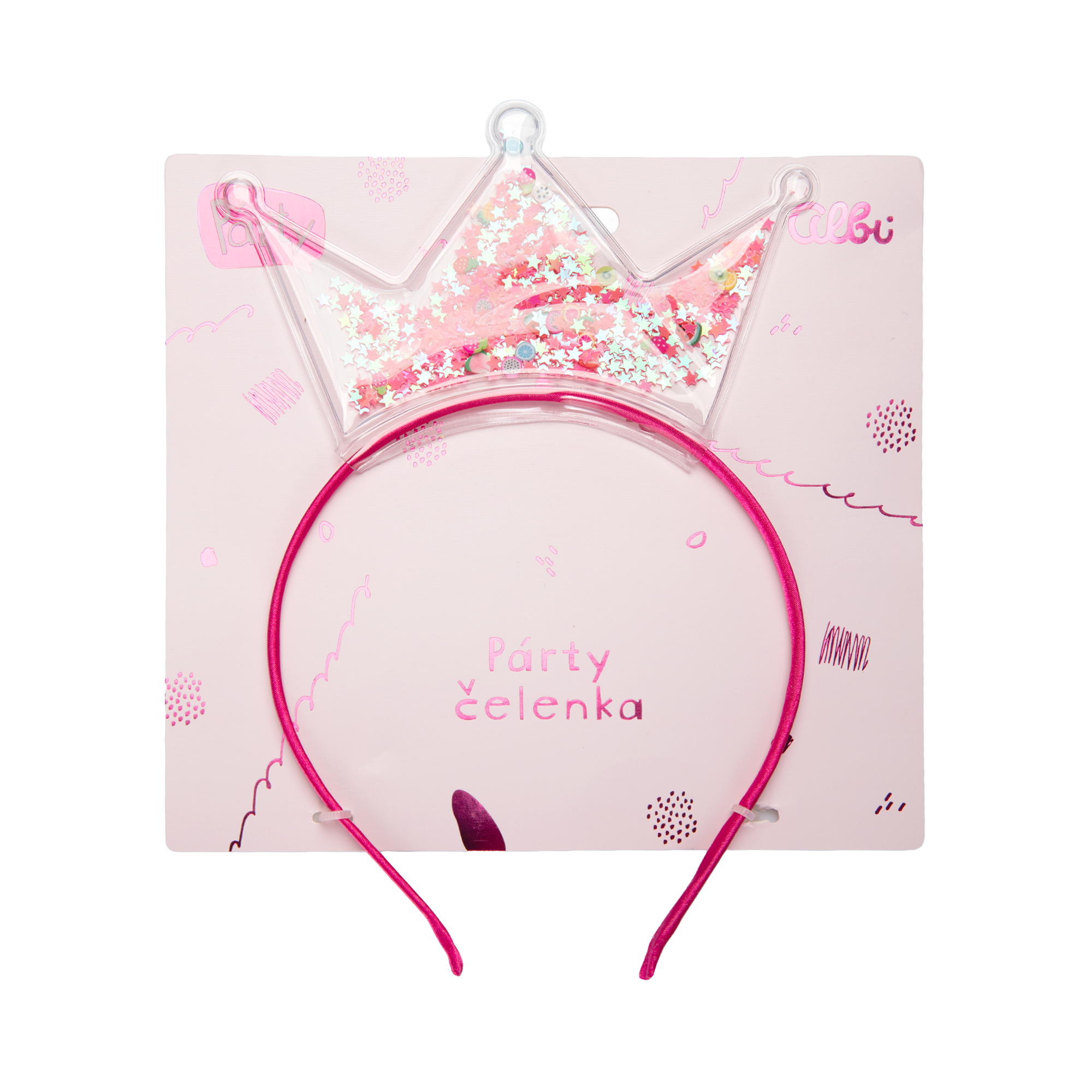 Dětská růžová čelenka ozdobená korunkou skvěle doplní kostým princezny na karneval, tematickou oslavu narozenin nebo při hraní. Balení obsahuje kovovou čelenku potaženou tmavě růžovou saténovou látkou. Je ozdobena transparentní korunkou, která je naplněná malými třpytivými hvězdičkami ve světle růžové barvě a drobným mixem ovoce. Další princeznovské párty doplňky a dekorace najdete v naší tematické kategorii Princezny. Rozměry: 14,4 × 21,5 cm Velikost: univerzální (určeno pro děti) Balení obsahuje: 1 ks párty čelenky Nevhodné pro děti do 3 let.
