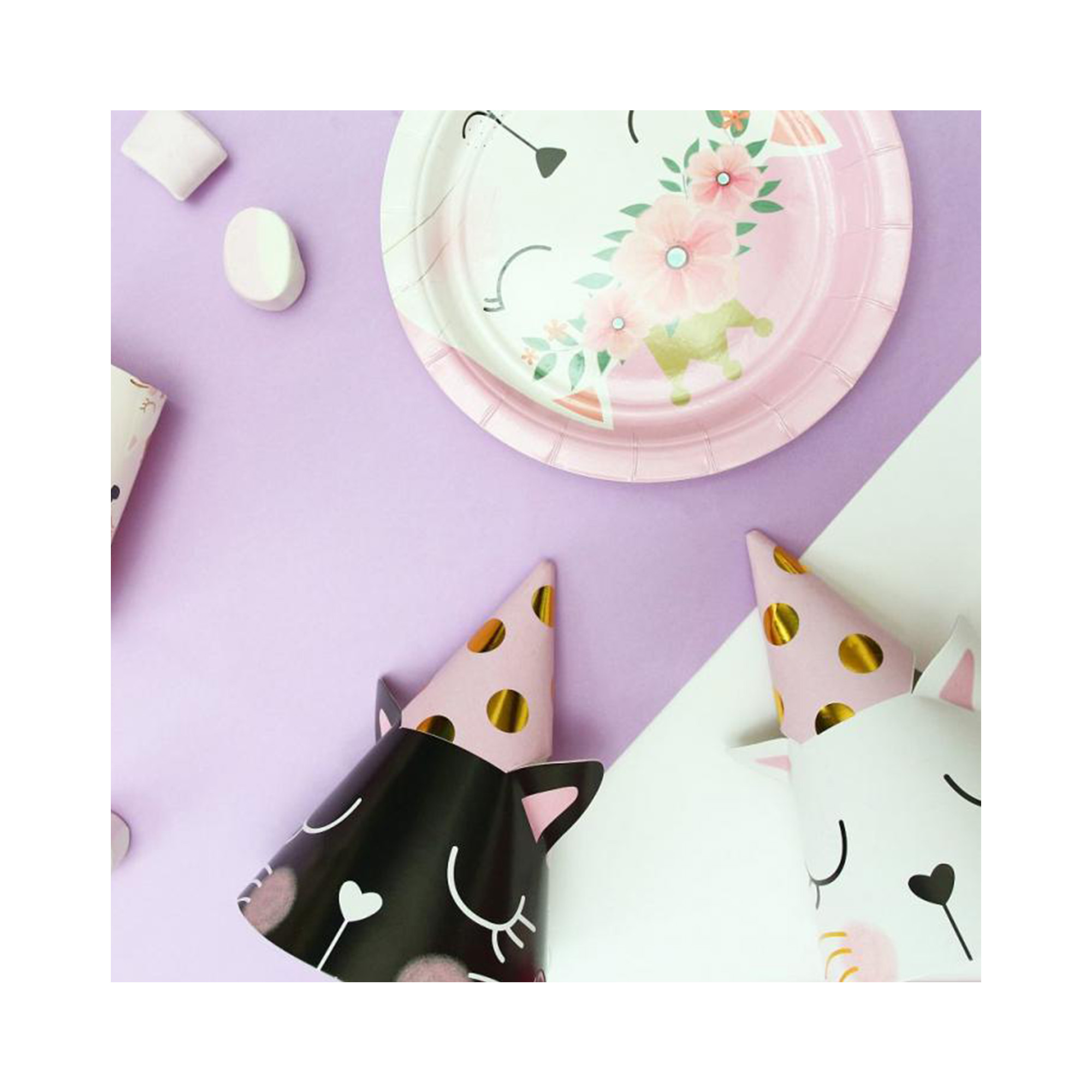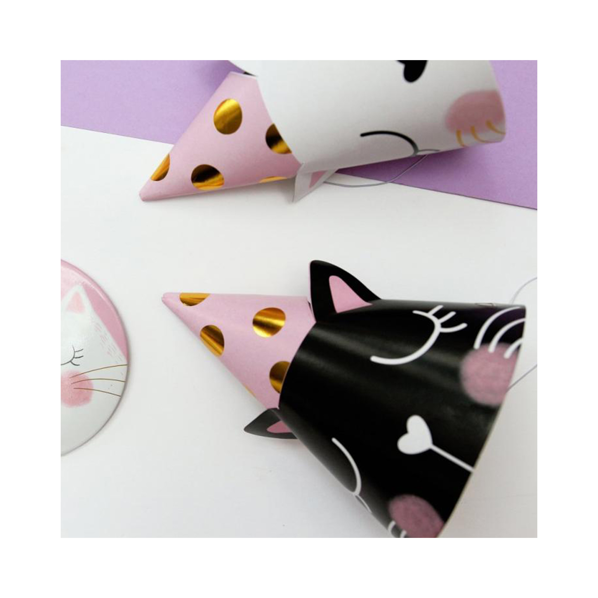 Papírové párty čepičky s motivem kočičky skvěle ladí v kombinaci s dalšími produkty ve stejném motivu jako jsou kelímky, talířky, ubrousky a brčka. Inspiraci můžete hledat v kategorii Párty pro děti – Kočičky. Velikost: univerzální (určeno pro děti). Balení obsahuje 6 ks papírových čepiček s gumičkou.