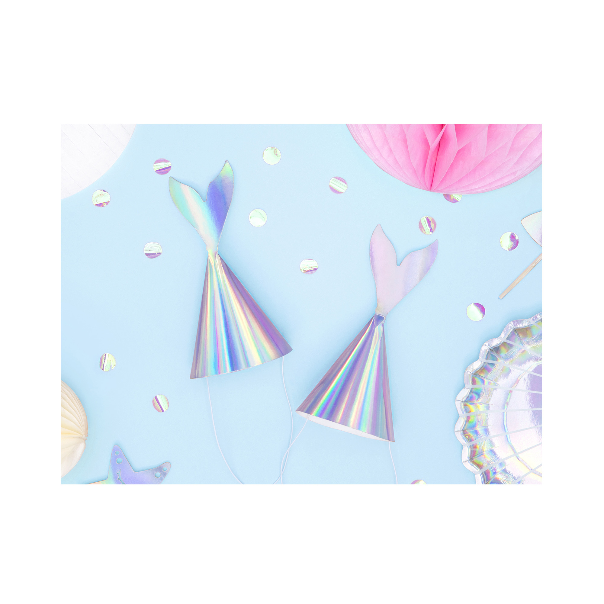 sada duhových čepiček Mořská panna v originálním tvaru ocasu je ideální doplněk pro tematickou oslavu v motivu mořské víly nebo Mermaid párty. Pro další produkty v motivu mořské panny a podmořského světa můžete prozkoumat naši kategorii Podmořský svět. Rozměry: výška 18 cm a průměr 8 cm Balení obsahuje: 6 ks papírových čepiček s gumičkou (čepičky se dodávají rozložené)