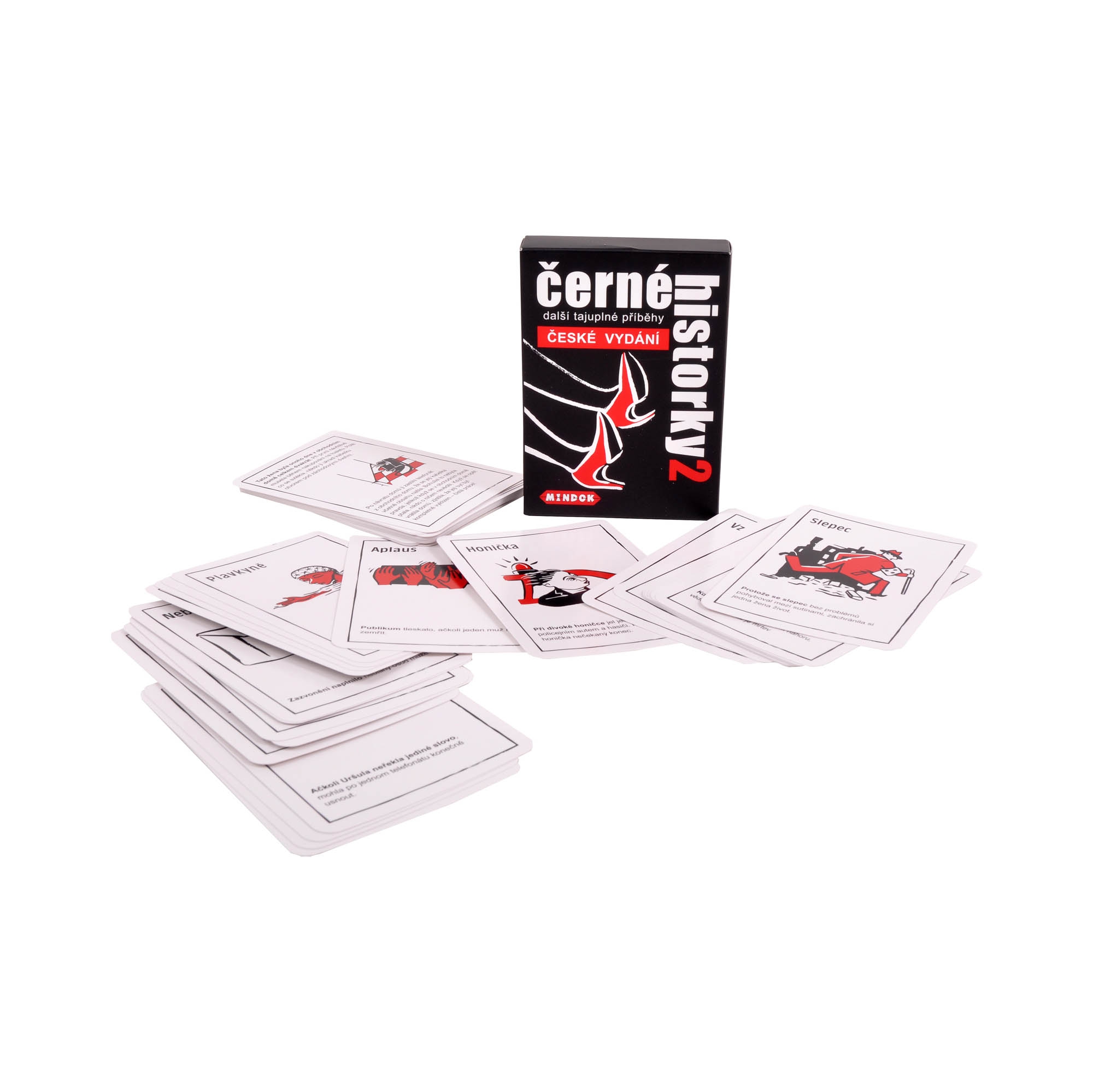 Tak tady se to hemží mrtvolami, jedy a úskoky! Jak se to vše mohlo stát? Černé historky jsou tajuplné, pochmurné a zapeklité detektivní případy, které čekají na to, až je někdo vyřeší. Jen jeden z vás bude znát celou pravdu, ostatní se k ní musejí dopátrat. Ač je téma pochmurné, s touto hrou se určitě na párty pobavíte! Pokračování oblíbených Černých historek s novými případy! Hra obsahuje:50 historek a pravidla.