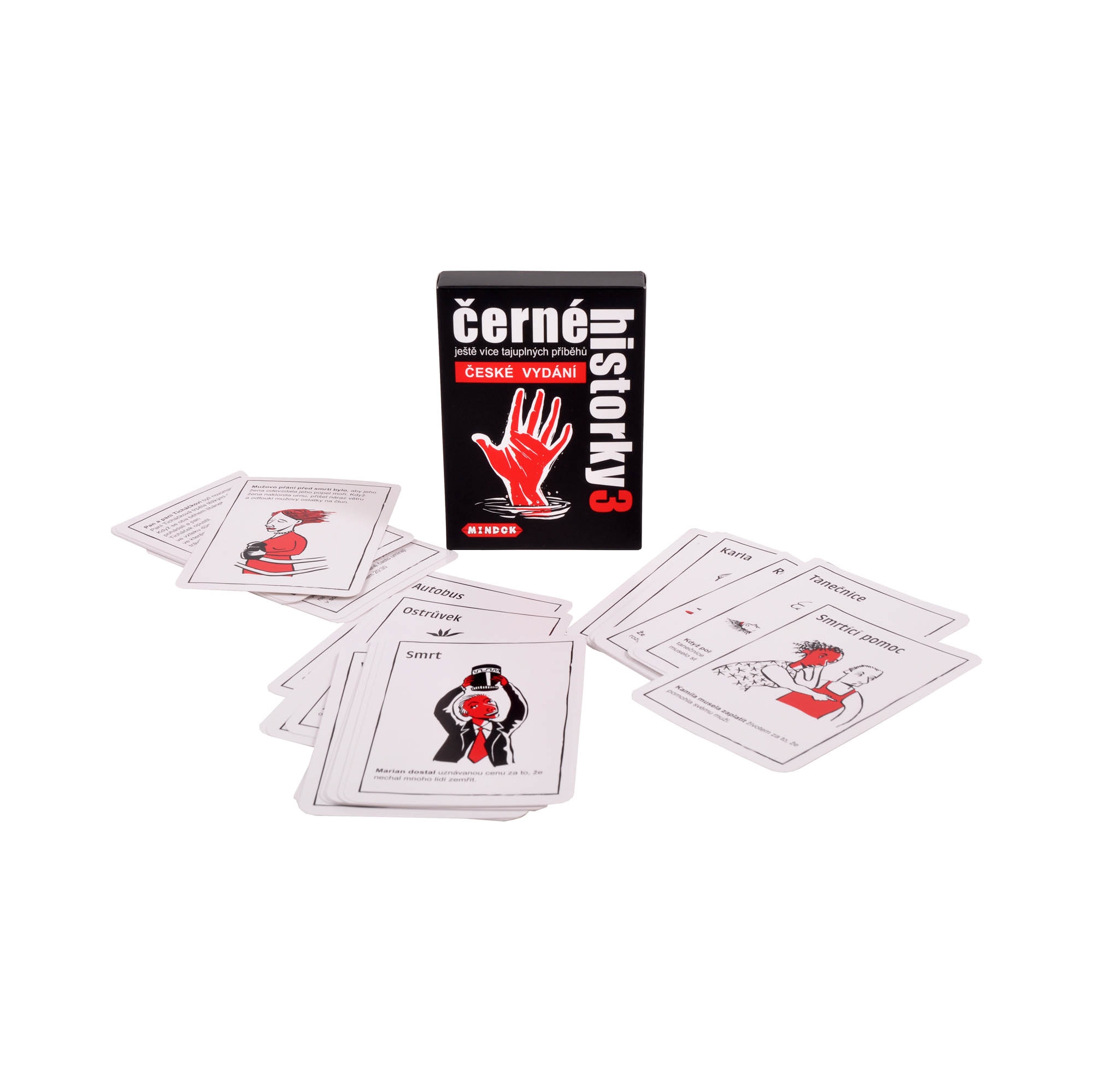 Tak tady se to hemží mrtvolami, jedy a úskoky! Jak se to vše mohlo stát? Černé historky jsou tajuplné, pochmurné a zapeklité detektivní případy, které čekají na to, až je někdo vyřeší. Jen jeden z vás bude znát celou pravdu, ostatní se k ní musejí dopátrat. Ač je téma pochmurné, s touto hrou se určitě na párty pobavíte! Pokračování oblíbených Černých historek 1 a 2 s novými případy!