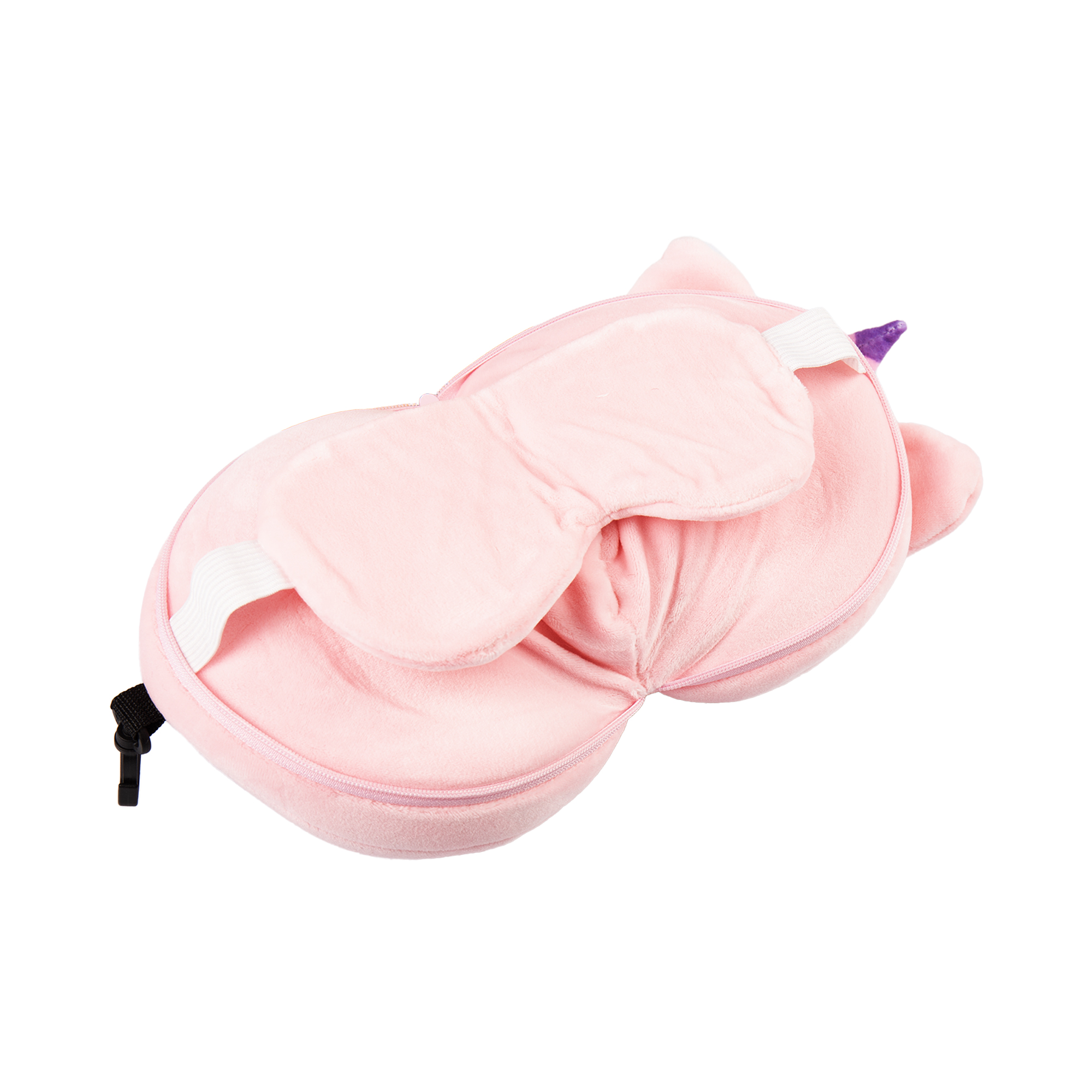 Příjemný polštář, který lze využít i jako roztomilého plyšáčka, uvnitř skrývá masku na oči, díky které vaše děti nevzbudí třeba protijedoucí auta, světla v letadle, nebo jim pomůže zahmouřit oči i přes den. Maska je s polštářem spojená, když si ji děti nasadí, vytvoří se jim za krkem příjemný záhlavník, díky kterému se pohodlně vyspí. Průměr polštáře: 16 cm