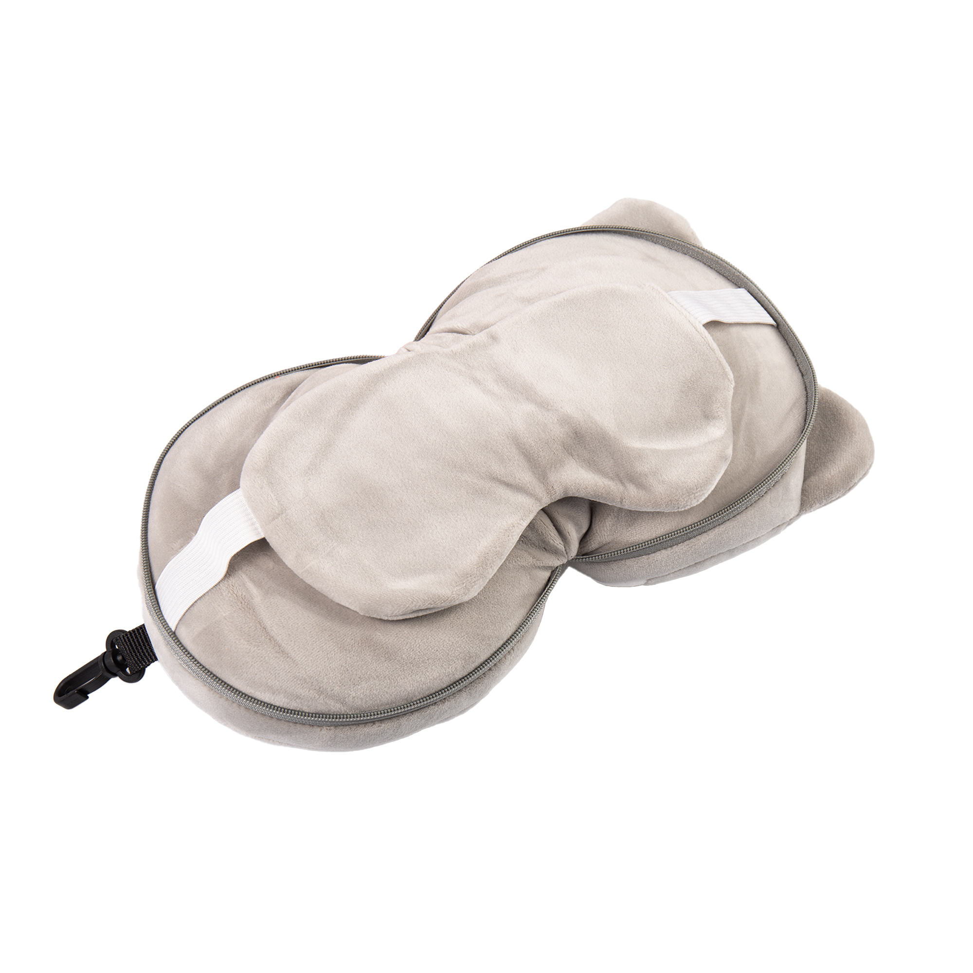 Příjemný polštář, který lze využít i jako roztomilého plyšáčka, uvnitř skrývá masku na oči, díky které vaše děti nevzbudí třeba protijedoucí auta, světla v letadle, nebo jim pomůže zahmouřit oči i přes den. maska je s polštářem spojená, když si ji děti nasadí, vytvoří se jim za krkem příjemný záhlavník, díky kterému se pohodlně vyspí. Průměr polštáře: 16 cm