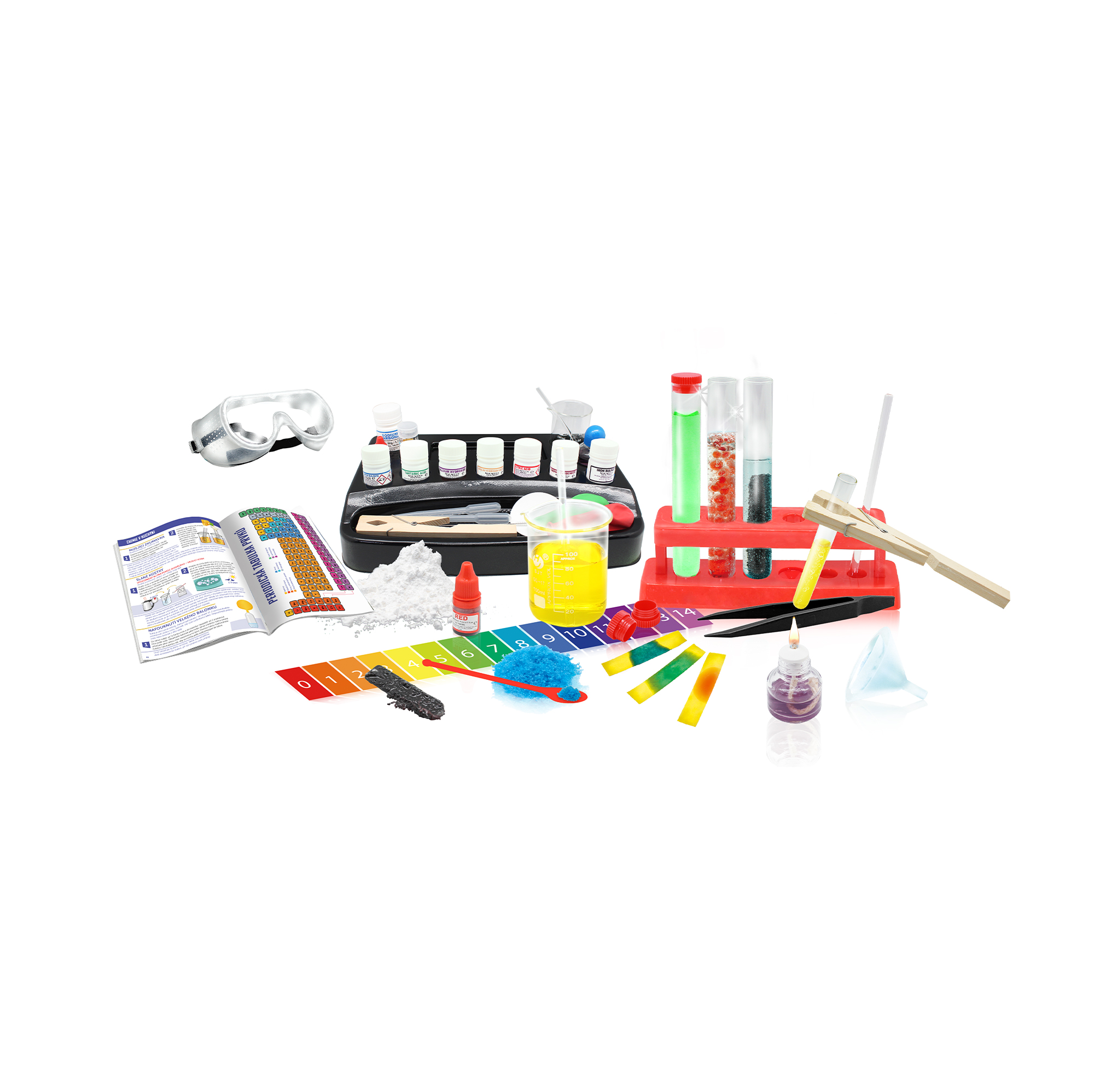 Už vás napadlo, jak chemie ovlivňuje všechno kolem nás? S pokročilou chemickou laboratoří se stanete skutečným vědcem a objevíte základní principy chemie! Prozkoumejte acidobazické reakce, tvorbu solí, substituční reakce kovů a srážení a mnoho dalších experimentů díky bezpečným chemikáliím a profesionálním laboratorním pomůckám, které vás krok za krokem provedou světem molekul a sloučenin. Naučíte se provádět experimenty, které vám poodhalí, jak funguje svět na mikroskopické úrovni. Čím se liší Chemická laboratoř Prémium od původní verze? Nová sada je "nabušenější" – obsahuje o 30 aktivit navíc, opravdické vybavení ze skla, kahan, více chemikálií a celkově více zábavy. Staňte se chemikem a nechte se okouzlit vědou! sada Chemická laboratoř premium obsahuje: držák na zkumavky, skleněnou míchací tyčinku, skleněnou kádinku, filtrační papír, alobal, balonky, 8 nádobek s chemickými látkami, jedlou sodu, síran měďnatý, kyselinu citronovou, uhličitan sodný, kyselinu vinnou, pyrosiřičitan sodný, hydroxid vápenatý, síran železnatý, pinzetu, nálevku, podnos na pomůcky, zátky do zkumavek, tekuté červené barvivo, oboustrannou lžičku, zinek, univerzální indikátorové papírky (lakmusové papírky), kartáček na zkumavky, zkumavky a stojan na zkumavky, lihový kahan, pipety, ochranné brýle, česká a slovenská pravidla.