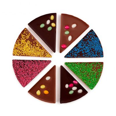 Čokoládové pizzy z výtečné belgické čokolády pobaví každého milovníka sladkého. Nevšední mlsání, které vypadá jako všemi oblíbená pizza. Navíc bez palmového oleje! Skvělý nápad na dárek nebo na občerstvení pro hosty. Hmotnost: 105 g