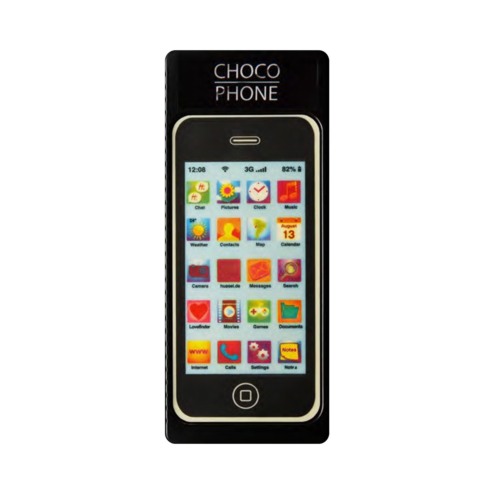 Darujte místo klasické čokolády originální čokoládový mobil. Tento sladký dárek potěší především malé milovníky technologií. Dárkové balení obsahuje mobilní telefon z bílé čokolády. Hmotnost: 70 g Bílá čokoláda s dekorem Složení: cukr, kakaové máslo, sušené plnotučné mléko (18 %), kakaová hmota, sušená smetana, emulgátor (sójový lecitin), vanilkový extrakt, barvivo dekoru: Kurkumin, Karmín, rostlinná čerň, extrakt ze spiruliny. minimální podíl kakaové sušiny 33 %. Možné stopy: lískové ořechy, mandle. Nutriční hodnoty ve 100 g: energetická hodnota 2509 kJ / 602 kcal tuk 41 g (nasycené mastné kyseliny 25 g) sacharidy 53 g (z toho cukr 53 g) bílkoviny 5,6 g sůl 0,19 g