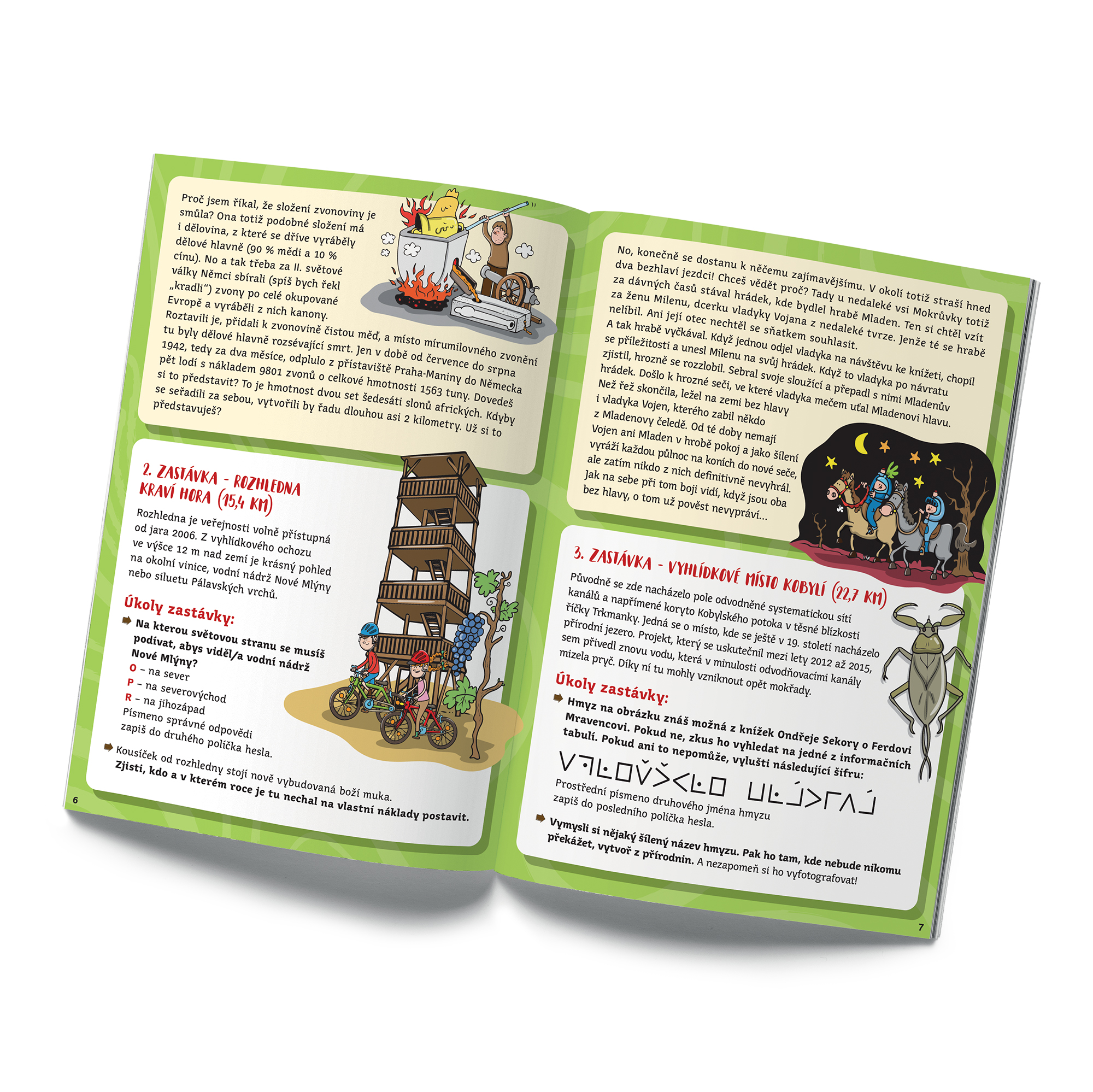 Vydejte se s Kvídem na 3 cyklovýlety v širším okolí Břeclavi. Trasy měří přibližně 30 kilometrů a na každém výletě vás bude provázet jedna historická (nebo smyšlená) postava, která má s tímto krajem něco společného. Po cestě se dozvíte řadu zajímavostí o místech, kterými budete projíždět, a také poutavý příběh od vašeho průvodce. Navíc můžete na každé zastávce, kterých je cca šest na jedné trase, plnit úkoly, luštit či něco hledat, abyste získali tajné heslo. Užijte si krásný cyklovýlet! Prozkoumejte okolí Břeclavi s knížetem Břetislavem. Projeďte se s čertem Turoldem kolem Mikulova. Vydejte se se zvonem Benediktem kolem Klobouk u Brna. Kvídovy cyklovýlety s příběhy obsahují: 3 brožury s popisem výletů, příběhy a úkoly, 3 mapy výletů a instrukce k výletům.