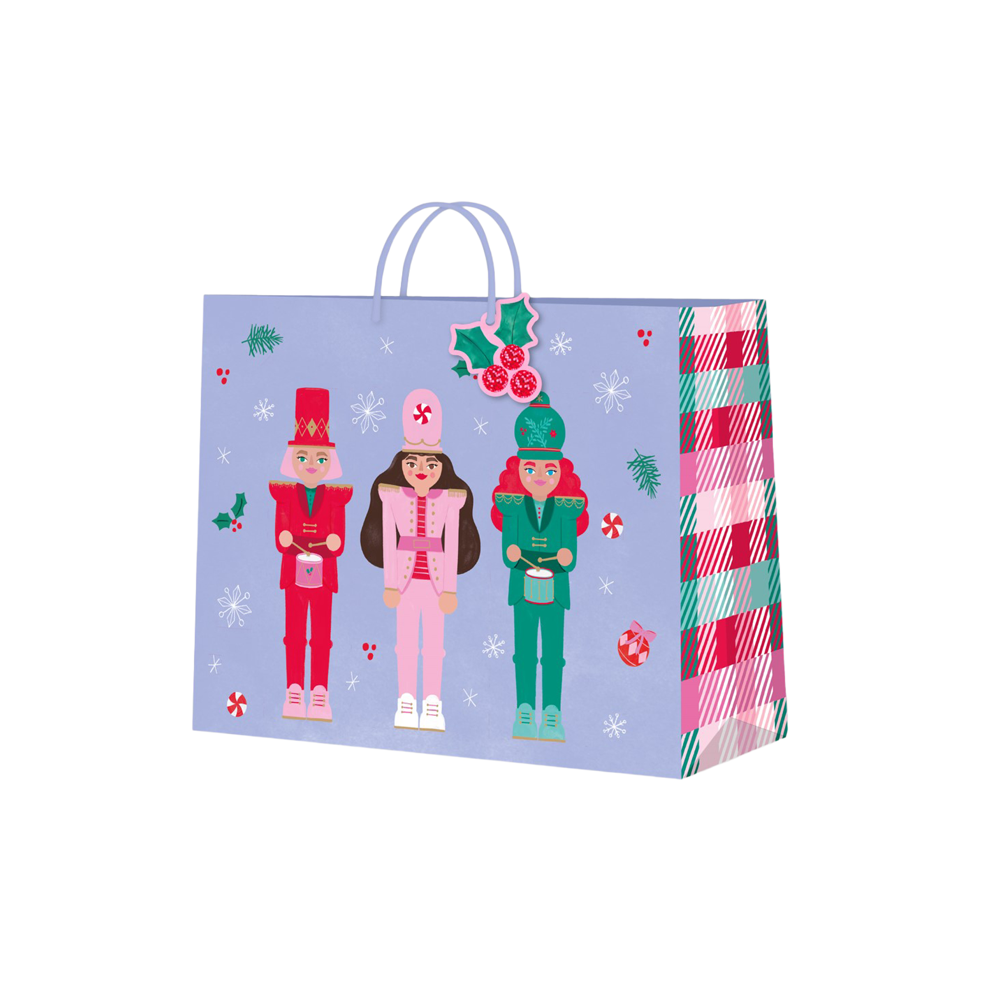 Máte koupený vánoční dárek a potřebujete ho rychle zabalit, aby i jako dárek vypadal? S papírovou taškou od Albi už to nemůže být snadnější. Stačí předmět do tašky vložit a máte hotovo. Široká vánoční dárková taška v pastelových barvách s motivem louskáčků nabízí snadný způsob zabalení dárku pro mladé slečny. Je dostupná ve dvou velikostech: Rozměry malé tašky: 22,9 × 9,8 × 17,8 cm (šířka × hloubka × výška) Rozměry velké tašky: 32,4 × 12,7 × 26 cm (šířka × hloubka × výška)