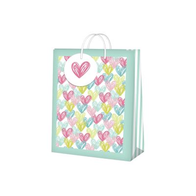 Máte koupený dárek a potřebujete ho rychle zabalit, aby i jako dárek vypadal? S papírovou taškou od Albi už to nemůže být snadnější. Stačí předmět do tašky vložit a můžete rovnou gratulovat. Pastelová dárková taška se srdíčky je vhodná na zabalení dárku pro mladé slečny i ženy. Je dostupná ve dvou velikostech a skvěle se hodí pro různé příležitosti, jako jsou narozeniny, svátek nebo Vánoce. Rozměry malé tašky: 17,8 × 9,8 × 22,9 cm (šířka × hloubka × výška) Rozměry velké tašky: 26 × 12,7 × 32,4 cm (šířka × hloubka × výška)