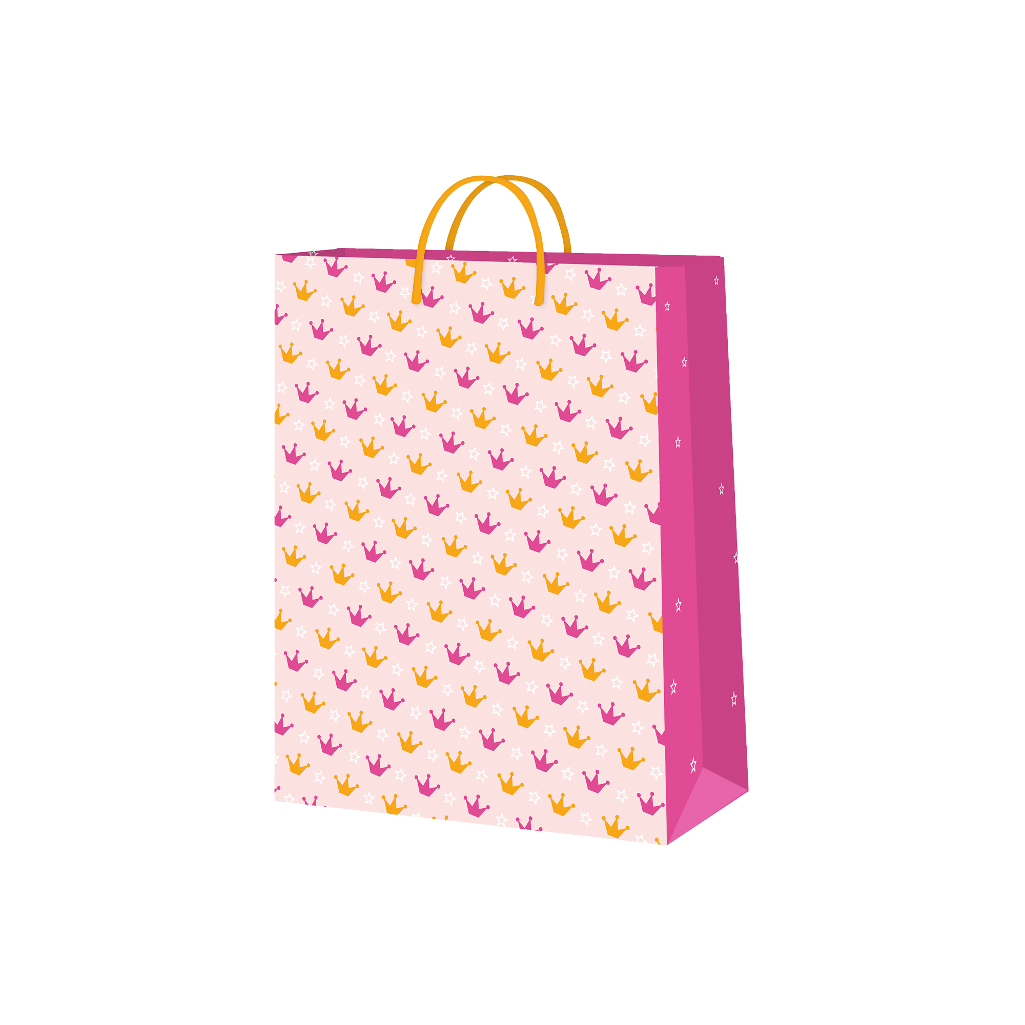 Máte koupený dárek a potřebujete ho rychle zabalit, aby i jako dárek vypadal? S papírovou taškou od Albi už to nemůže být snadnější. Stačí předmět do tašky vložit a můžete rovnou gratulovat. Růžová dárková taška nese motiv malých princeznovských korunek ve 2 barvách doplněný bílými hvězdičkami. Jednoduchý vzor zaujme především malé oslavenkyně. Je dostupná ve dvou velikostech a skvěle se hodí pro různé příležitosti, jako jsou narozeniny, svátek i Vánoce. Rozměry malé tašky: 17,8 × 9,8 × 22,9 cm (šířka × hloubka × výška) Rozměry velké tašky: 26 × 12,7 × 32,4 cm (šířka × hloubka × výška)