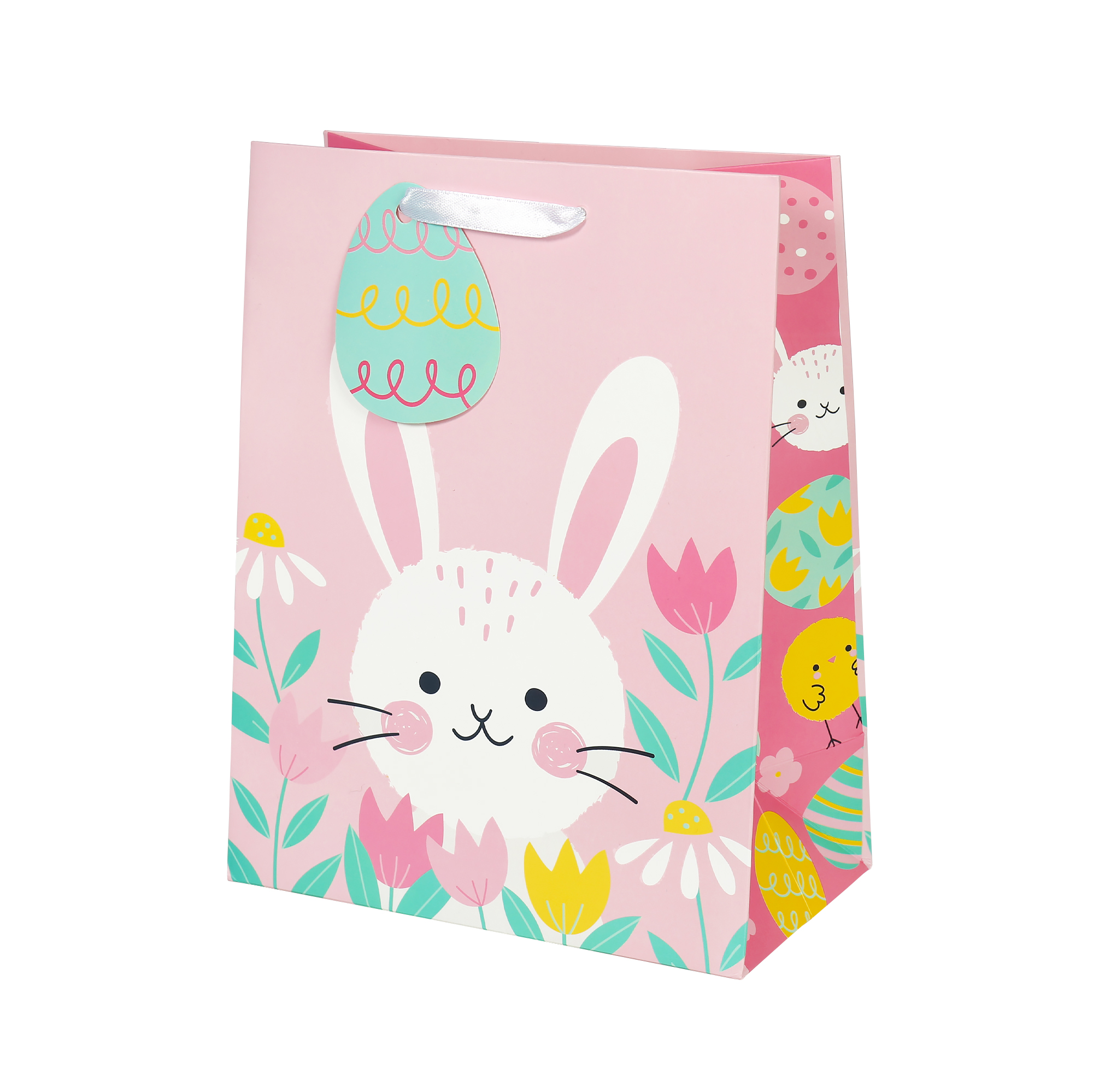Velikonoční dárková taška s motivem roztomilých zajíčků je dostupná ve dvou velikostech a skvěle se hodí pro velikonoční výslužku. Rozměry malé tašky: 17,8 × 9,8 × 22,9 cm (šířka × hloubka × výška) Rozměry velké tašky: 26 × 12,7 × 32,4 cm (šířka × hloubka × výška)