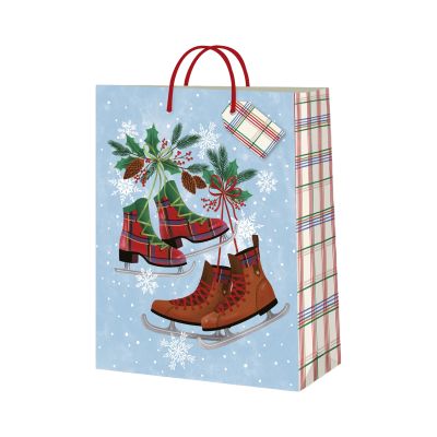 Máte koupený vánoční dárek a potřebujete ho rychle zabalit, aby i jako dárek vypadal? S papírovou taškou od Albi už to nemůže být snadnější. Stačí předmět do tašky vložit a máte hotovo. barevná vánoční dárková taška s motivem ledních bruslí, cesmíny a sněhových vloček nabízí velmi snadný způsob zabalení dárku pod stromeček pro muže i ženy. Je dostupná ve dvou velikostech: Rozměry malé tašky: 17,8 × 9,8 × 22,9 cm (šířka × hloubka × výška) Rozměry velké tašky: 26 × 12,7 × 32,4 cm (šířka × hloubka × výška)