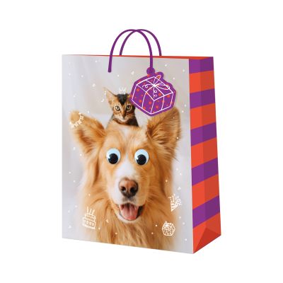 Máte koupený dárek a potřebujete ho rychle zabalit, aby i jako dárek vypadal? S papírovou taškou od Albi už to nemůže být snadnější. Stačí předmět do tašky vložit a můžete rovnou gratulovat. vtipná dárková taška s pejskem a kočičkou s přilepenýma koulícíma očima pro všechny oslavence je dostupná ve dvou velikostech a skvěle se hodí pro různé příležitosti, jako jsou narozeniny nebo svátek. Rozměry malé tašky: 17,8 × 9,8 × 22,9 cm (šířka × hloubka × výška) Rozměry velké tašky: 26 × 12,7 × 32,4 cm (šířka × hloubka × výška)