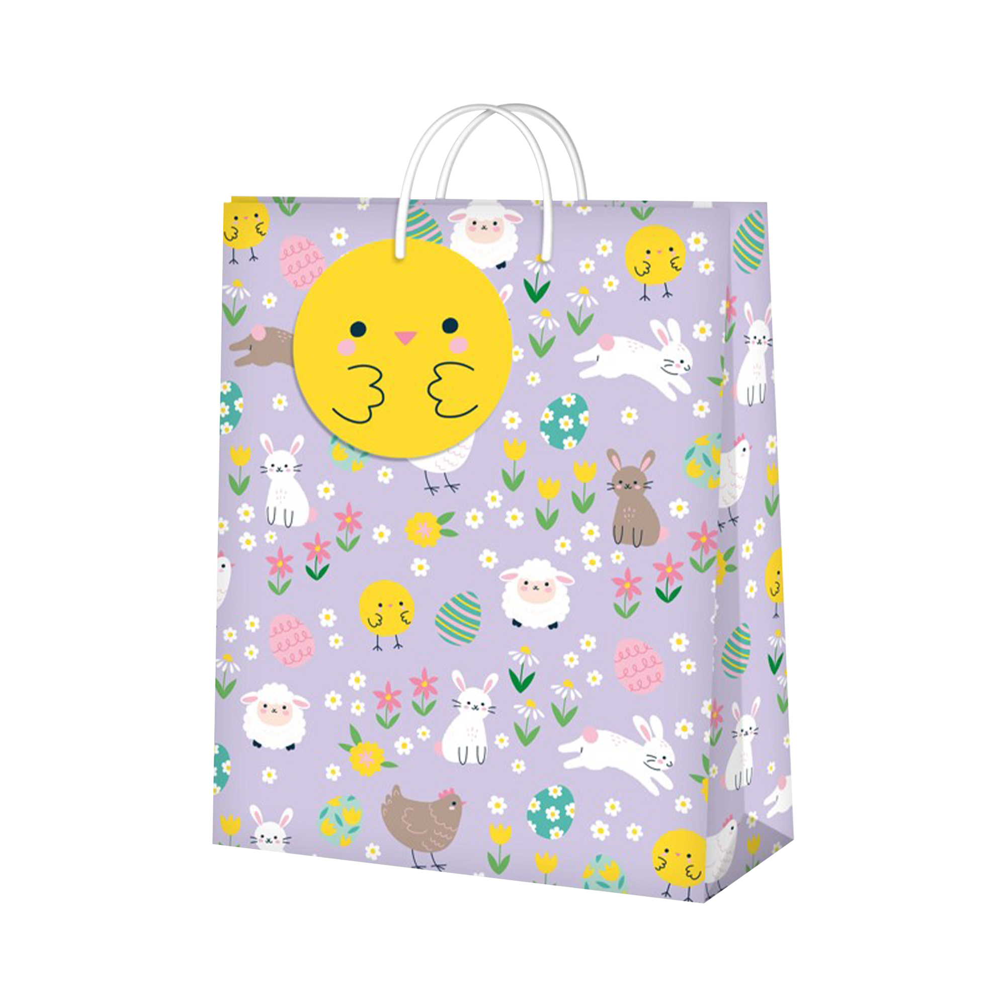 Velikonoční dárková taška s motivem zvířátek je dostupná ve dvou velikostech a skvěle se hodí pro velikonoční výslužku. Rozměry malé tašky: 17,8 × 9,8 × 22,9 cm (šířka × hloubka × výška) Rozměry velké tašky: 26 × 12,7 × 32,4 cm (šířka × hloubka × výška)