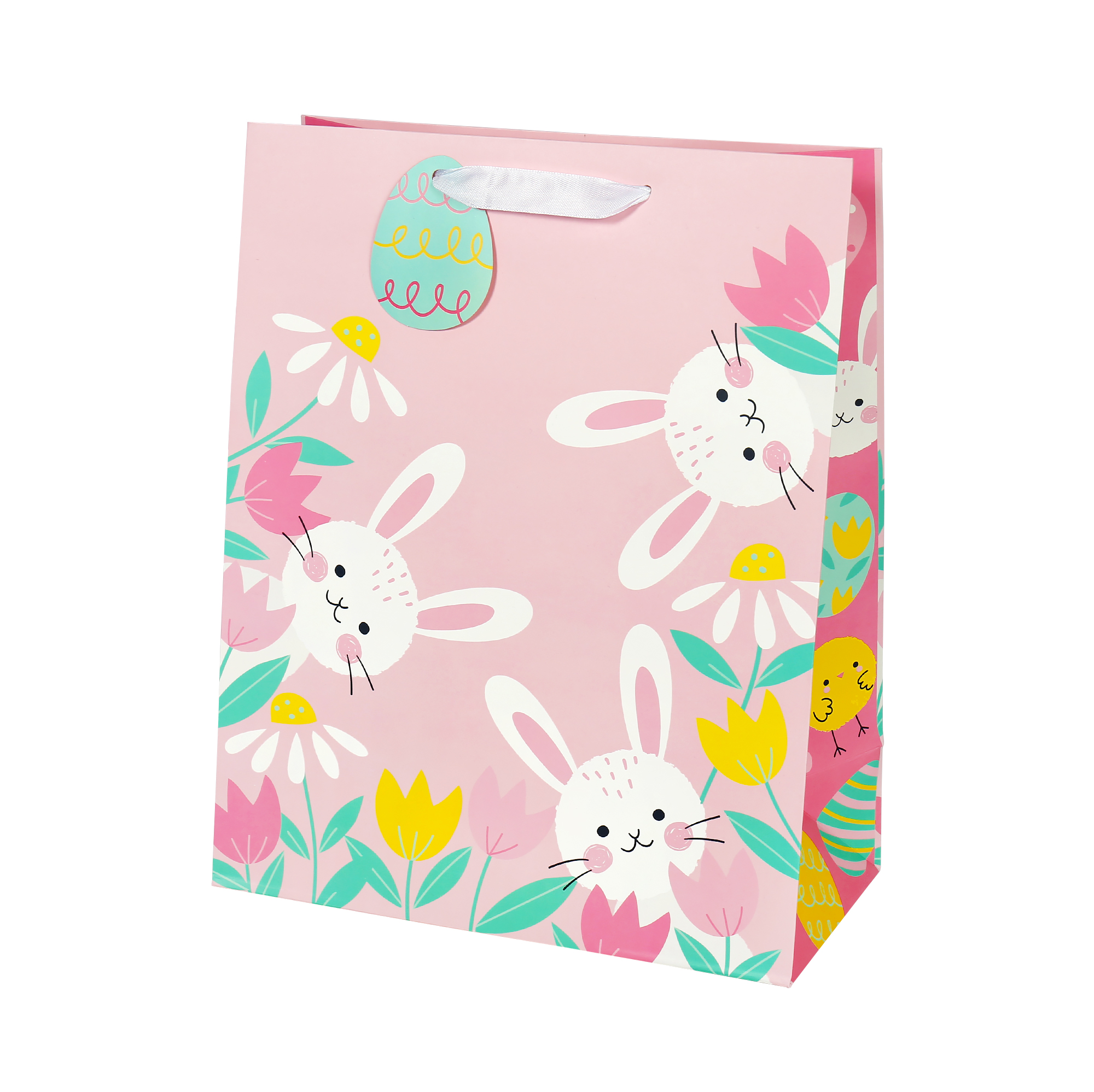 Velikonoční dárková taška s motivem roztomilých zajíčků je dostupná ve dvou velikostech a skvěle se hodí pro velikonoční výslužku. Rozměry malé tašky: 17,8 × 9,8 × 22,9 cm (šířka × hloubka × výška) Rozměry velké tašky: 26 × 12,7 × 32,4 cm (šířka × hloubka × výška)