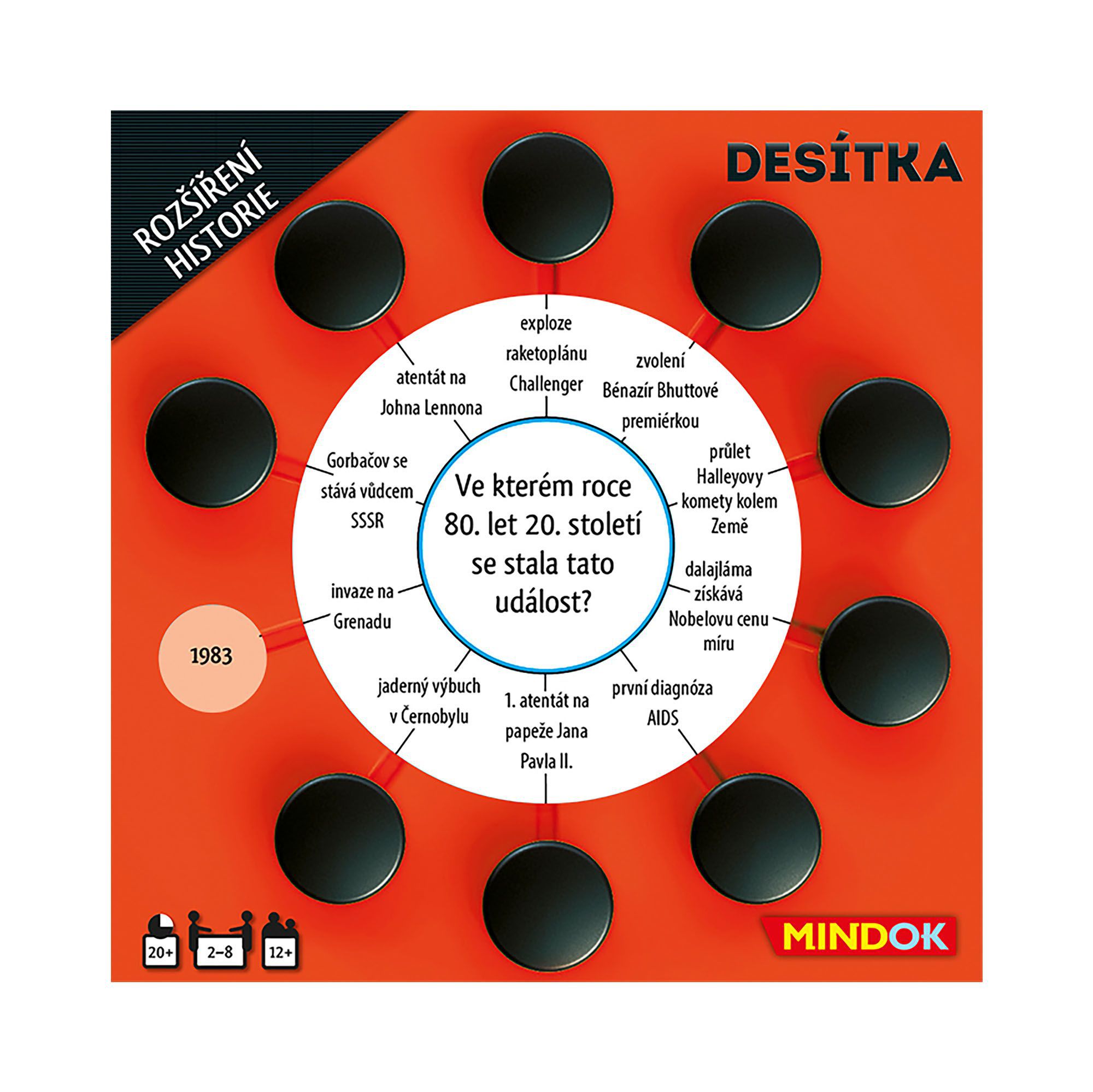 Rozšíření Historie pro kvízovou hru Desítka nebo Desítka: Česko obsahuje 50 tematických oboustranných karet. 100 nových okruhů, 1000 nových otázek a odpovědí týkajících se českých i zahraničních panovníků, bitev, objevů či dalších historických zajímavostí. Těmito kartami můžete nahradit polovinu karet ze základní hry. Jednotlivá rozšíření lze libovolně kombinovat. Rozšíření nelze hrát samostatně bez základní hry.
