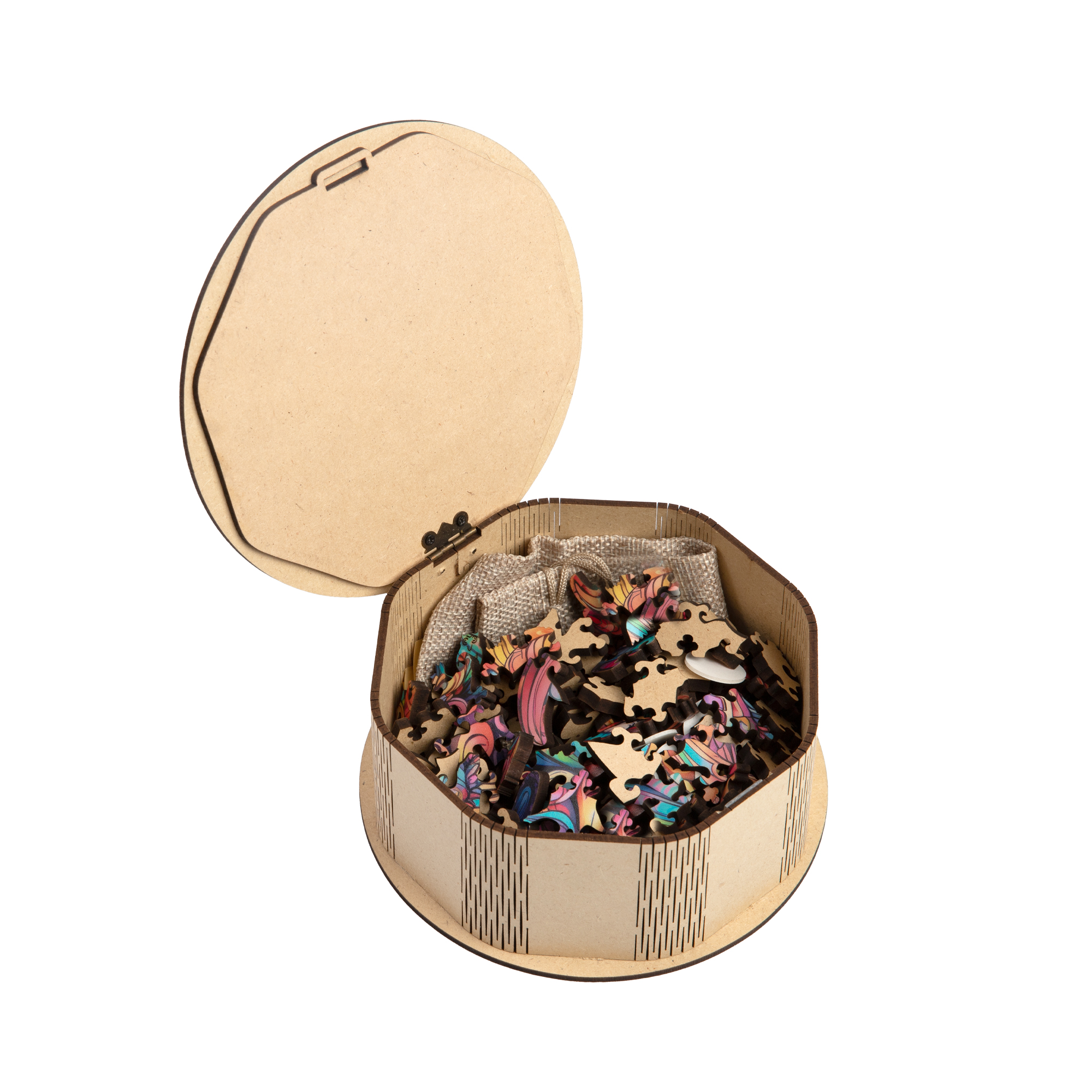 originální barevné puzzle z kvalitního dřeva potěší každého malého milovníka skládání. Skládání puzzlí je skvělý způsob, jak u dětí rozvíjet logické myšlení, jemnou motoriku i trpělivost. Hotové puzzle přinášejí radost z dokončeného úkolu, navíc je to ideální aktivita pro společně strávený čas s rodinou. Balení obsahuje 100 pevných dílků, mezi nimiž najdete i několik ve tvaru zvířat a přírodních motivů, které dodávají skládání hravý rozměr. Součástí balení je také praktický plátěný sáček na uložení dílků a samolepicí fólie, díky které můžete hotové puzzle zafixovat a třeba si ho vystavit jako obrázek. Balení obsahuje: 100 dílků, plátěný pytlík, samolepicí fólie.