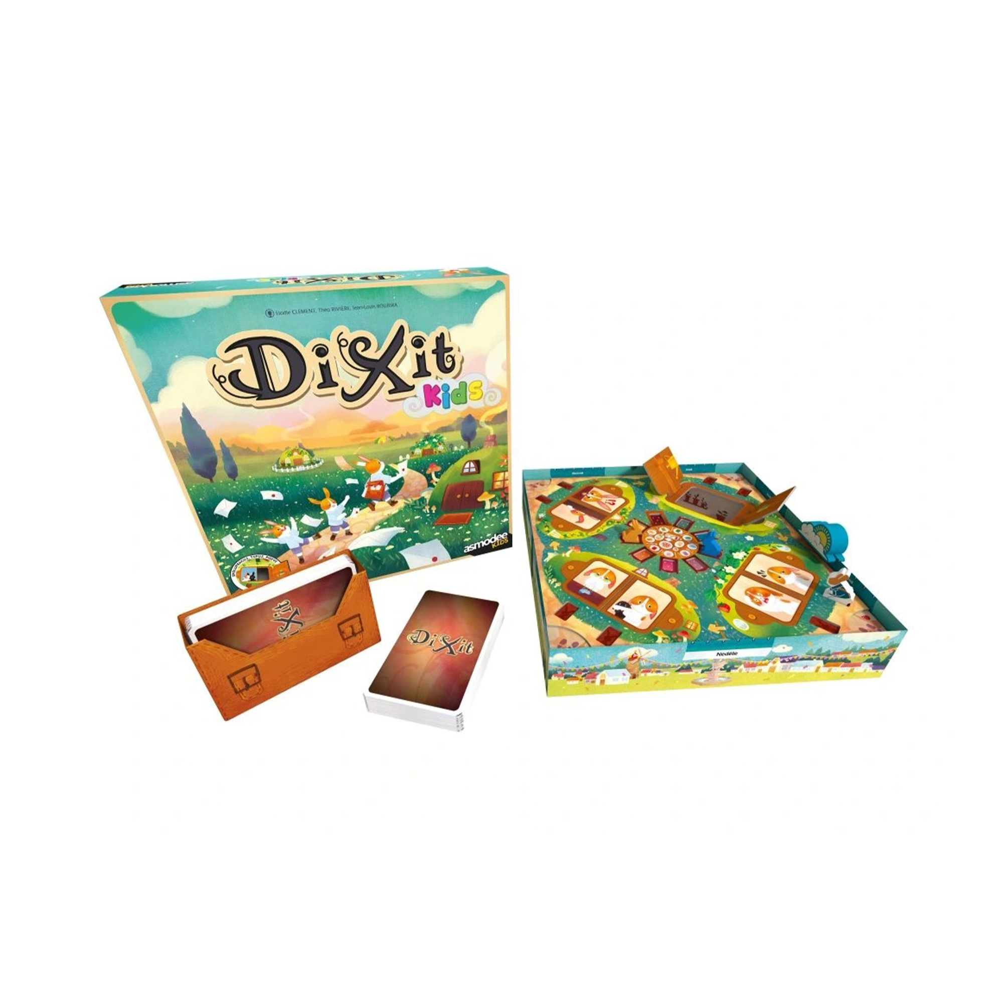 V neděli slaví králičí poštmistr narozeniny, ale zatím nikdo nedostal pozvánku, a proto nyní přišla řada na vás, šikovné králičí pošťáky, abyste ukázali, co ve vás je. V této hře z kouzelného světa Dixit, která je nyní přizpůsobena dětem, vás čeká kooperativní zábava, v níž vítězíte společně. Vše začíná tím, že si jeden hráč v roli poštmistra tajně vybere 1 ze 2 králíčků na obrázku a k jeho náladě přiřadí kartu z ruky jako pozvánku. Ostatní hráči se ho pak snaží zmást tím, že přiloží své karty, které se naopak hodí k tomu druhému (nevybranému) králíčkovi. Všechny karty se pak promíchají a úkolem ostatních je v této hromadě společně odhalit tu jedinou správnou pozvánku, která patří původně zvolenému hostu. Karty Dixit Kids byly speciálně upraveny pro děti a jsou plně kompatibilní s ostatními hrami ze série Dixit. Hra Dixit Kids obsahuje: 1 herní desku, 10 dřevěných figurek, 32 dílků dveří, 84 Dixit karet se zásobníkem, česká a slovenská pravidla.