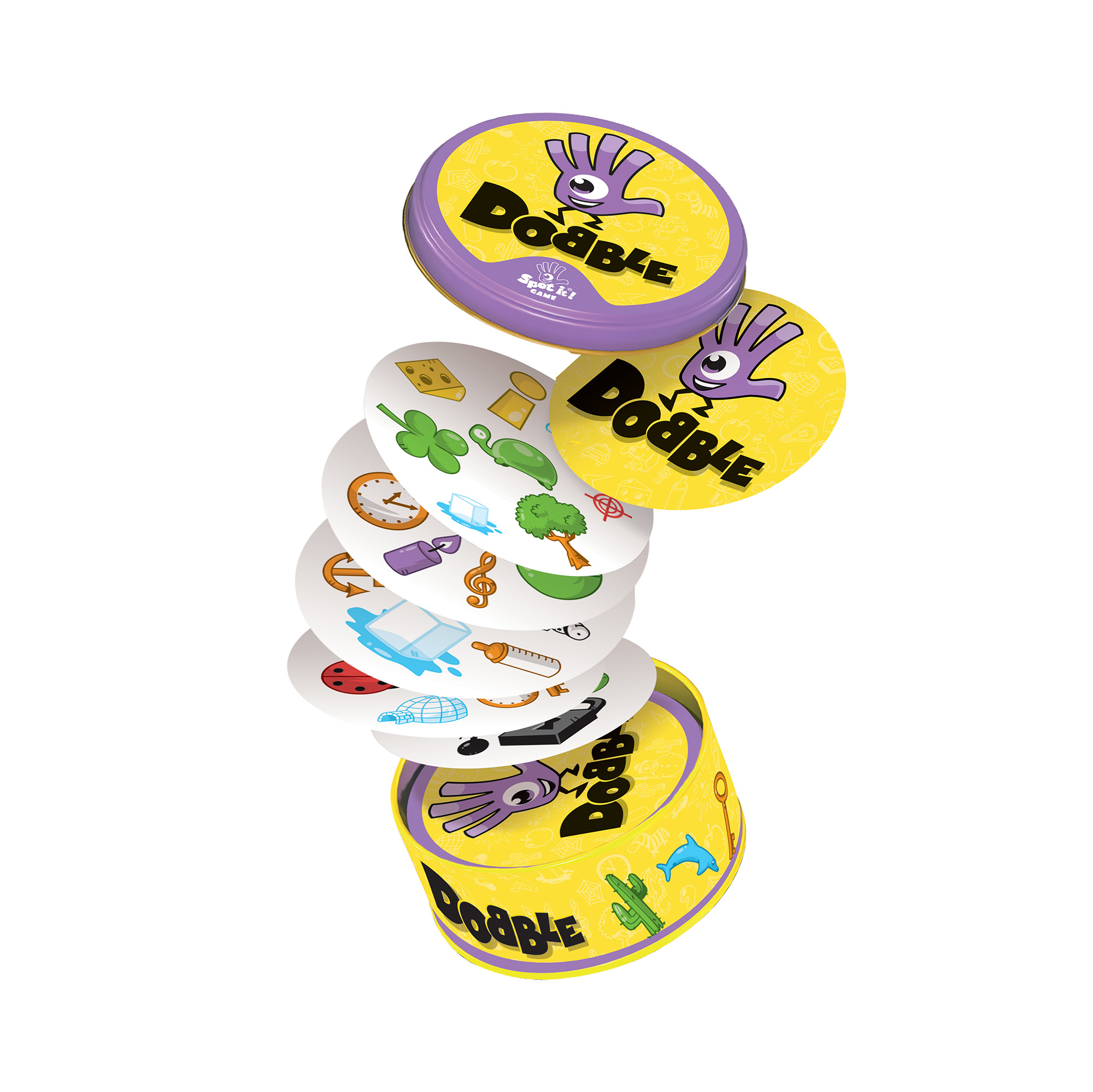 Dobble je rodinná hra zaměřená na rychlost, postřeh a reflexy, která zabaví každého bez rozdílu věku! Dobble to je 5 her v jedné, 50 různých symbolů, 55 karet, 8 symbolů na kartě a každé 2 karty spolu mají společný pouze jeden! Tato nová rodinná hra zabaví každého bez rozdílu věku! Hra je kompletně v češtině i slovenštině a nabízí zcela unikátní zábavu. Hráči zde hledají 2 stejné symboly na kartách při různých verzích hry (v pravidlech je popsáno celkem 5 her). super jsou kulaté karty i jednoduchá pravidla vysvětlená doslova za pár sekund. Tato hra je vhodná pro děti i rodiče – zkrátka pro všechny, kdo se chtějí pořádně bavit a nemají čas pročítat dlouhá pravidla. Plechová krabička zaručuje bezpečí karet a je i další přidanou hodnotou. Vyzkoušejte i vy hru Dobble a budete nadšení, jak i tak jednoduchá hra může být zábavná.