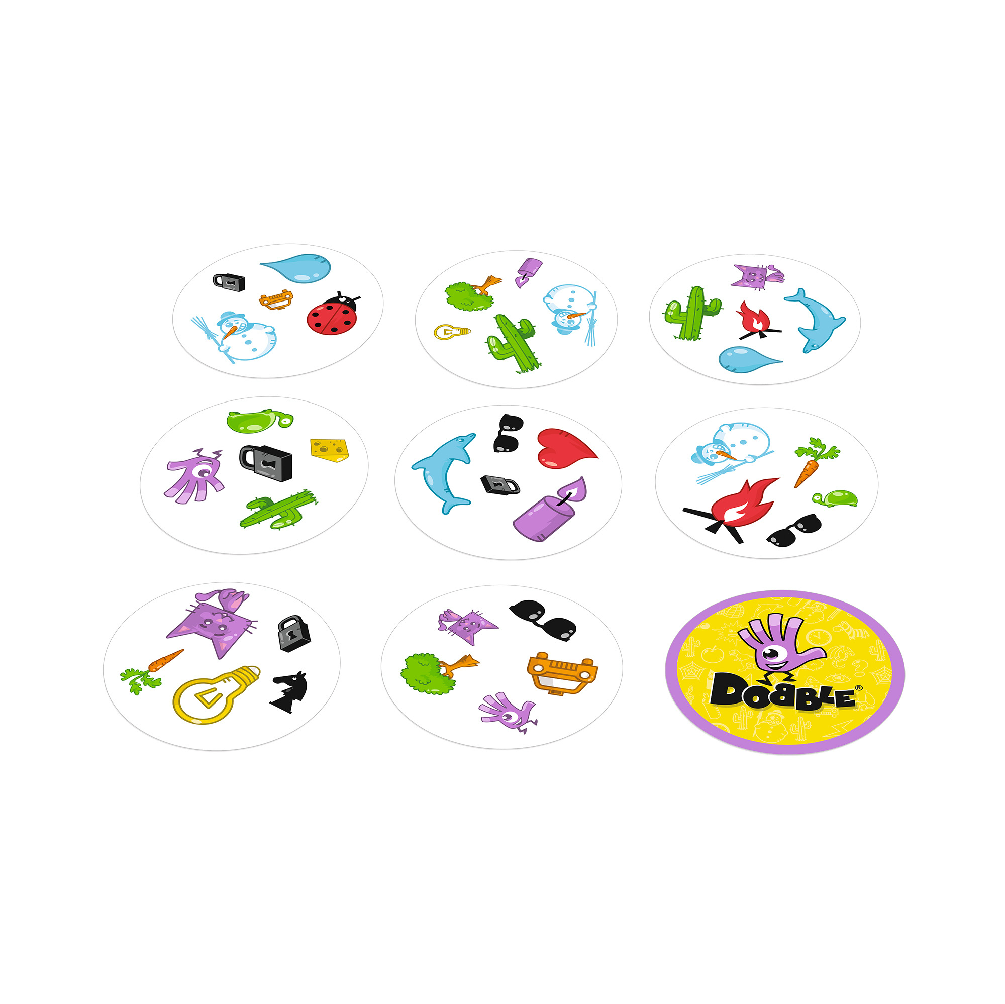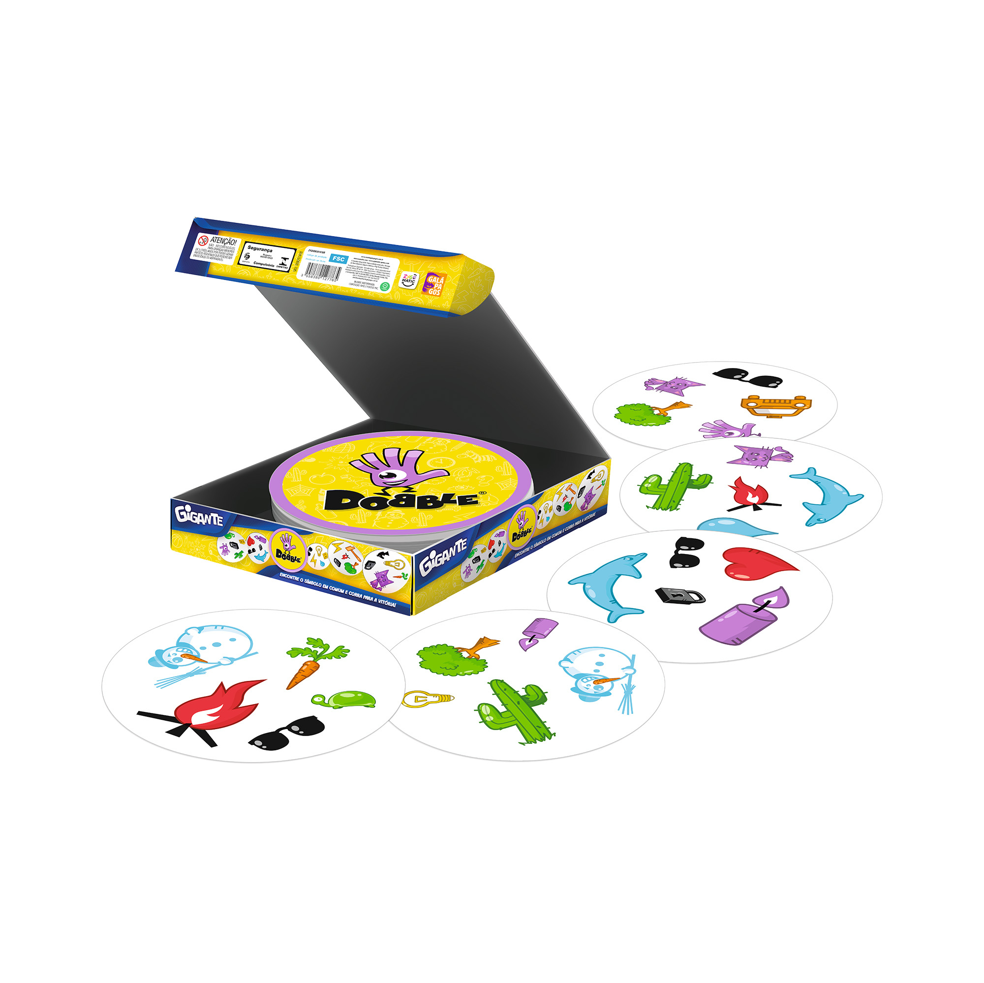 Najděte stejné symboly na cestě k vítězství! V této rychlé, gigantické hře založené na postřehu stačí najít jedinou shodu mezi dvěma kartami a vyhráváte! Objevte 4 exkluzivní varianty: Kruh, Štafetový závod, Kočka nebo Vhazování! Dobble Giant vychází z klasické postřehoví hry Dobble, ale díky novým pravidlům a velkým kartám z ní dělá zábavnou in i outdoorovou aktivitu. Hra Dobble Giant obsahuje: 20 bytelných karet o průměru 24,5 cm, česká a slovenská pravidla.